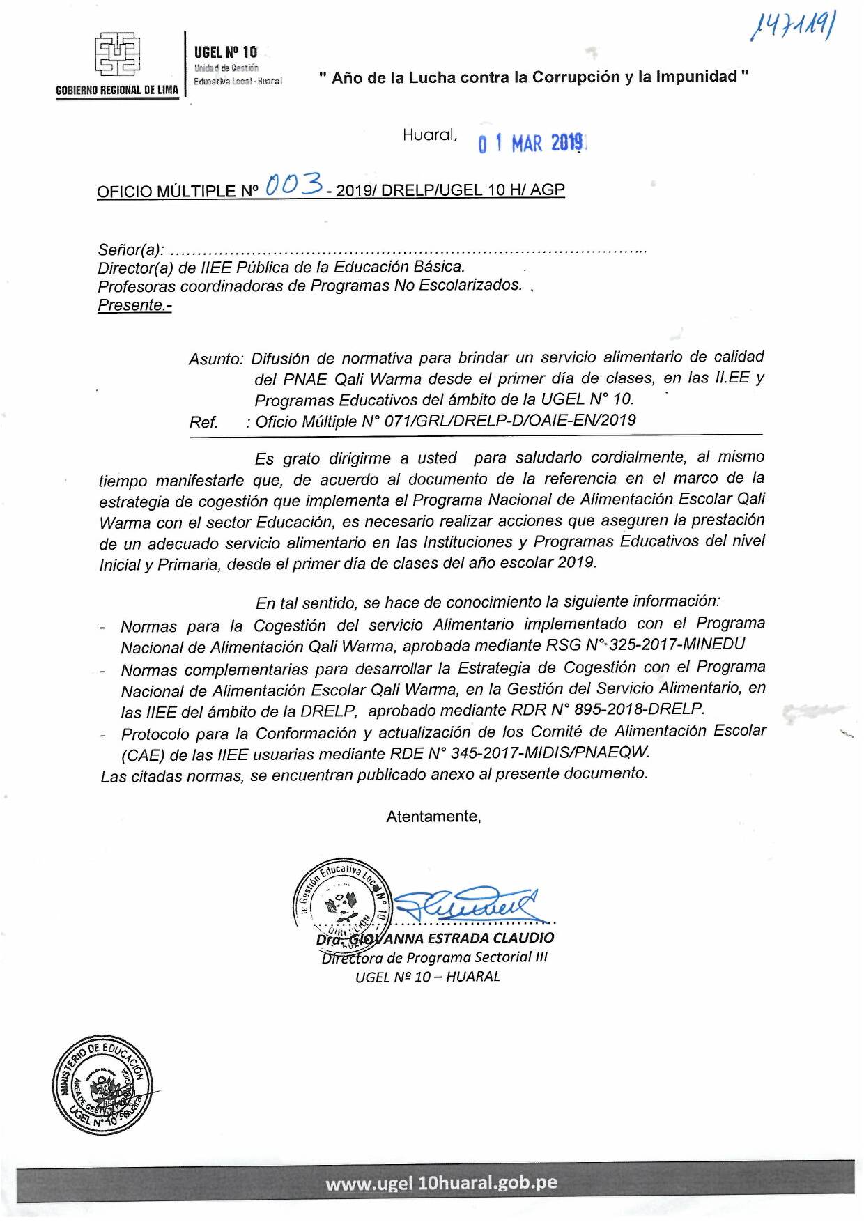 04 Mar,2019 Comunicados COMMENTS Difusión de Normativa para Brindar un Servicio Alimentario de Calidad del PNAE Qali Warma. ver R.S.G N° 325-2017-MINEDU ver Directiva N° 18-2018-DRELP ver R.D.E N~345-2017-MIDIS