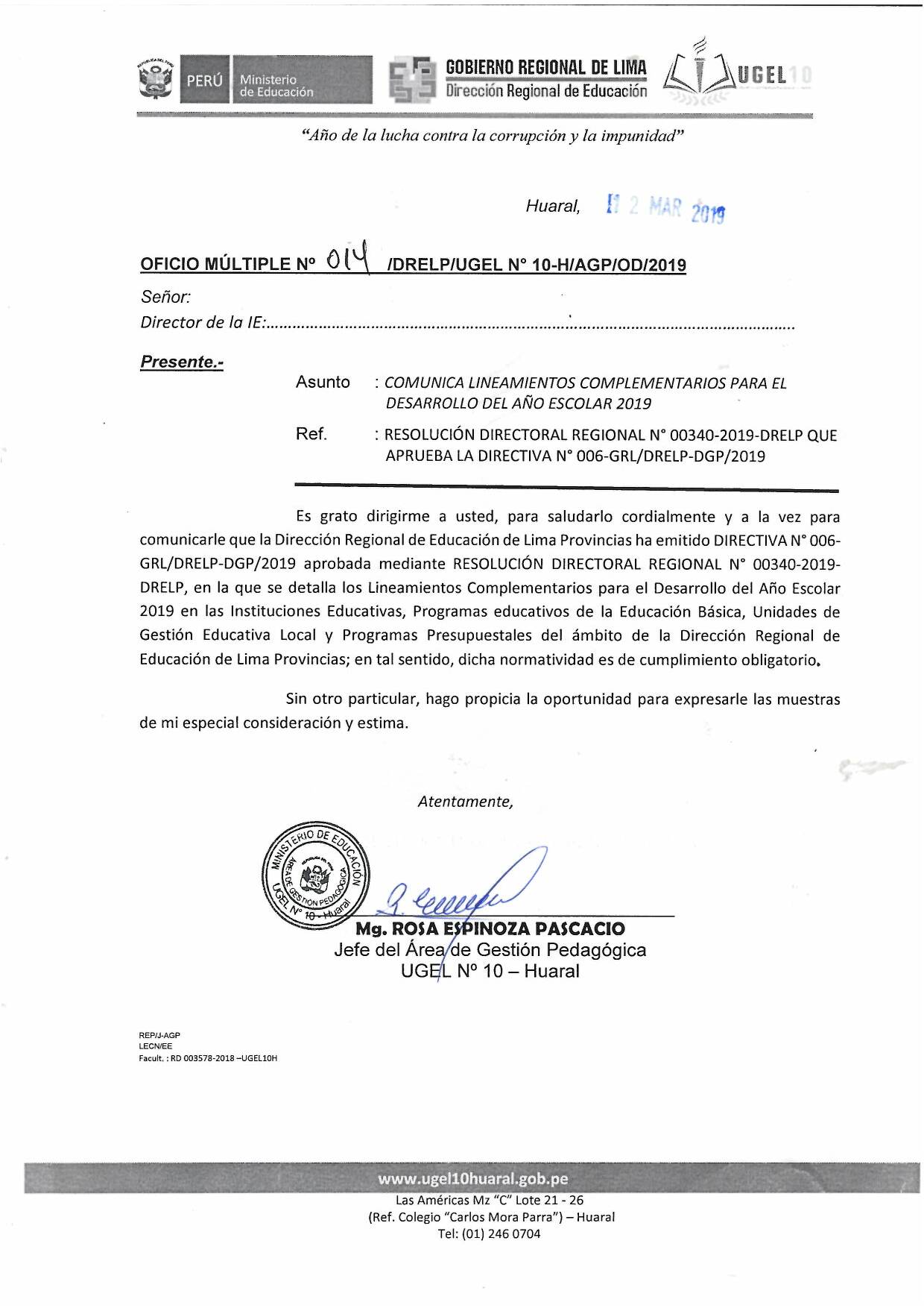 12 Mar,2019 Comunicados COMMENTS Lineamientos Complementarios para el Desarrollo del Año Escolar 2019. ver R.D.R N° 340-2019-DRELP y Directiva N°006-2019-DRELP