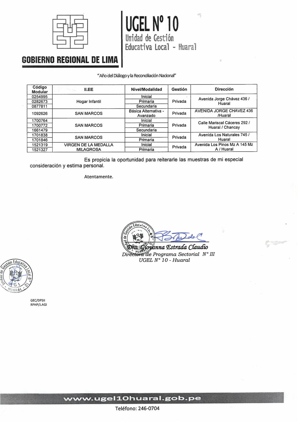 03 Abr,2019 Comunicados COMMENTS Oficio Múltiple para las siguientes Instituciones Educativas Privadas