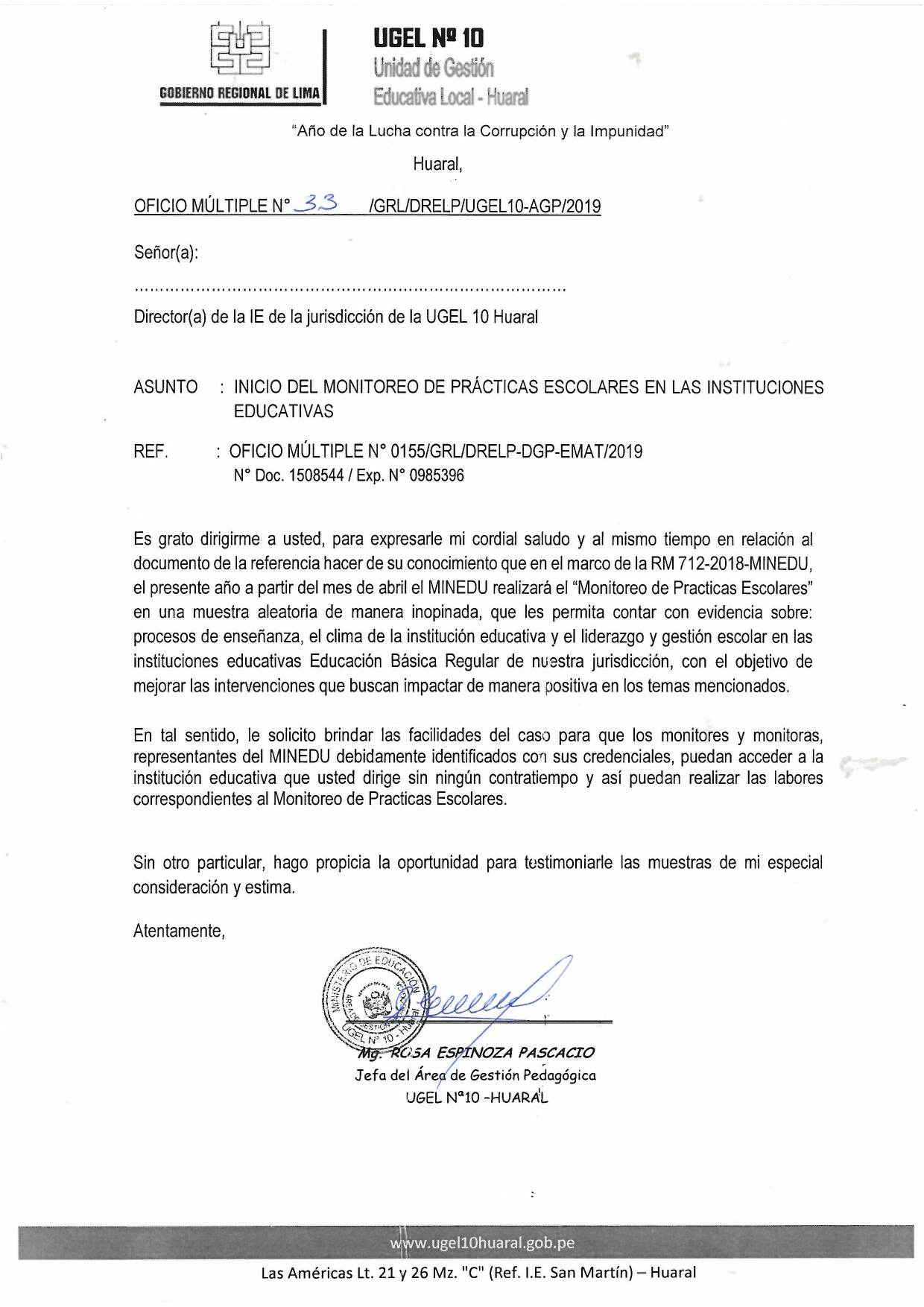 05 Abr,2019 Comunicados COMMENTS Inicio del Monitoreo de Prácticas Escolares en las Instituciones Educativas.