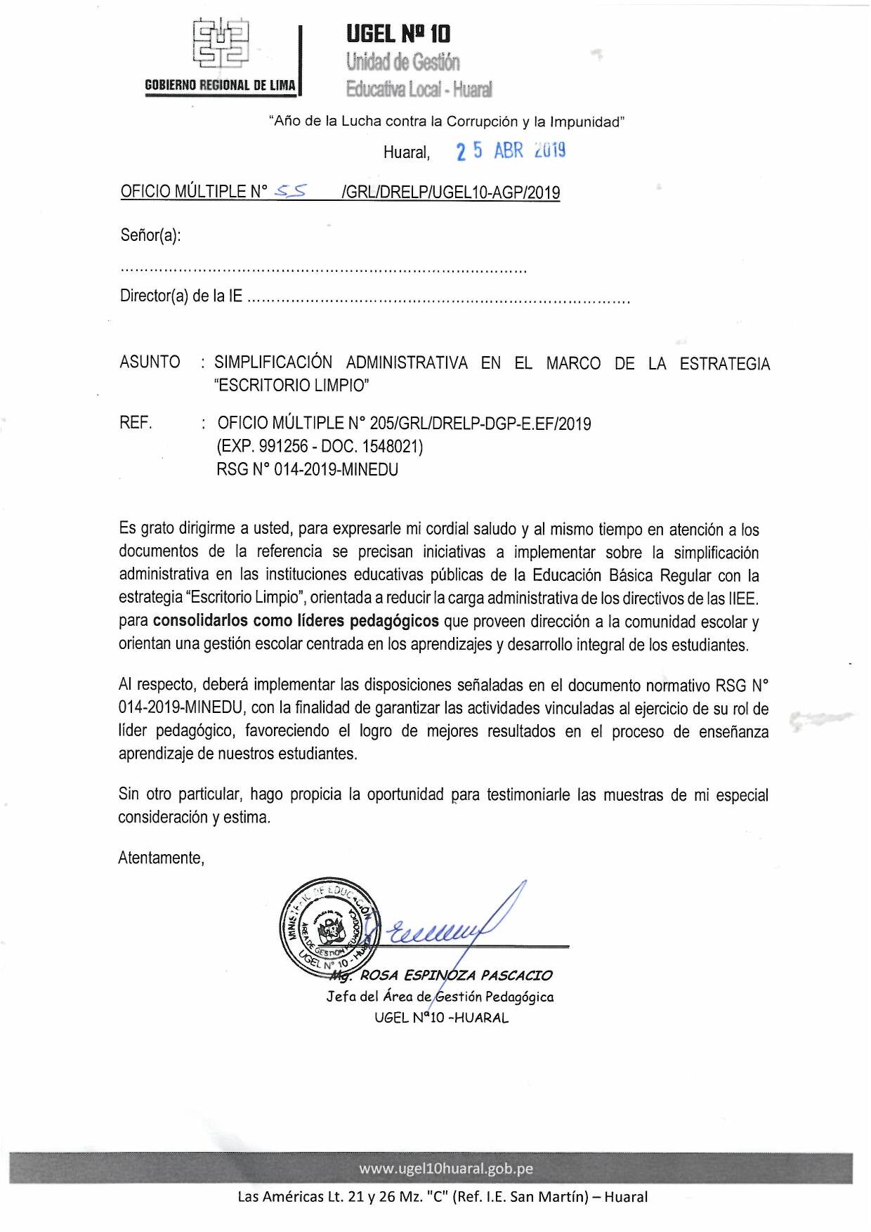 25 Abr,2019 Comunicados COMMENTS Simplificación Administrativa en el Marco de la Estrategia "Escritorio Limpio". ver y descargar RSG N°014-2019-MINEDU