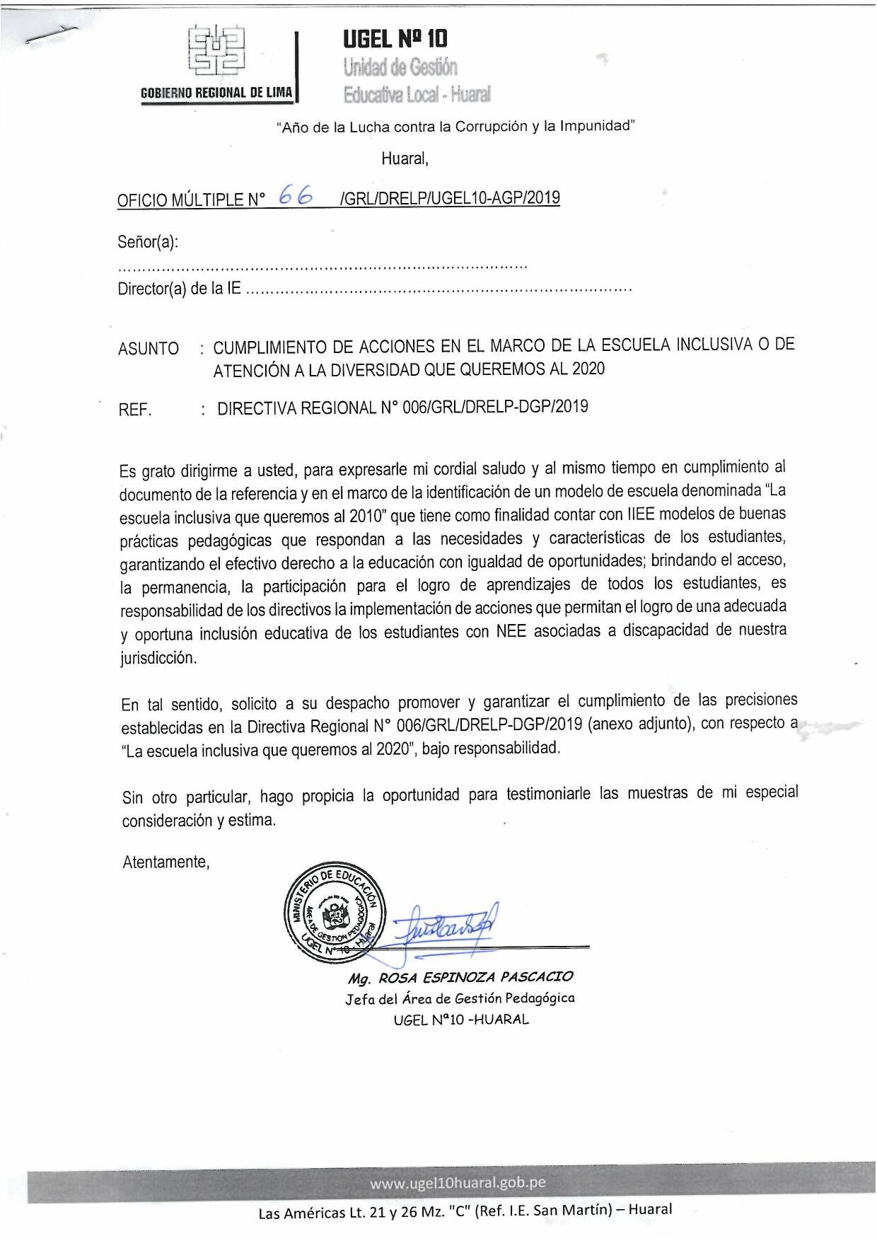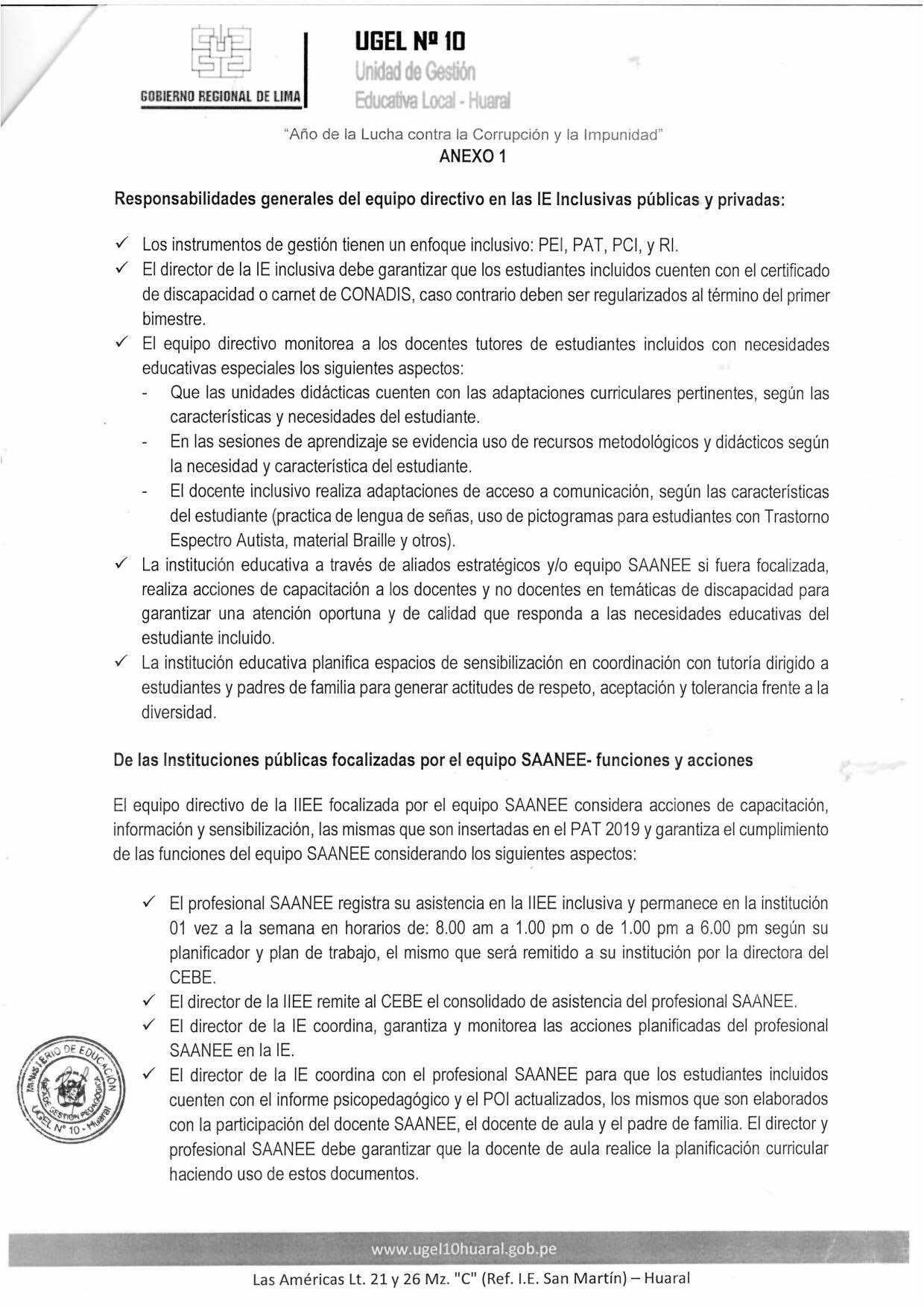 02 May,2019 Comunicados COMMENTS Cumplimiento de Acciones en el marco de la Escuela Inclusiva o de la Atención a la Diversidad que Queremos al 2020.