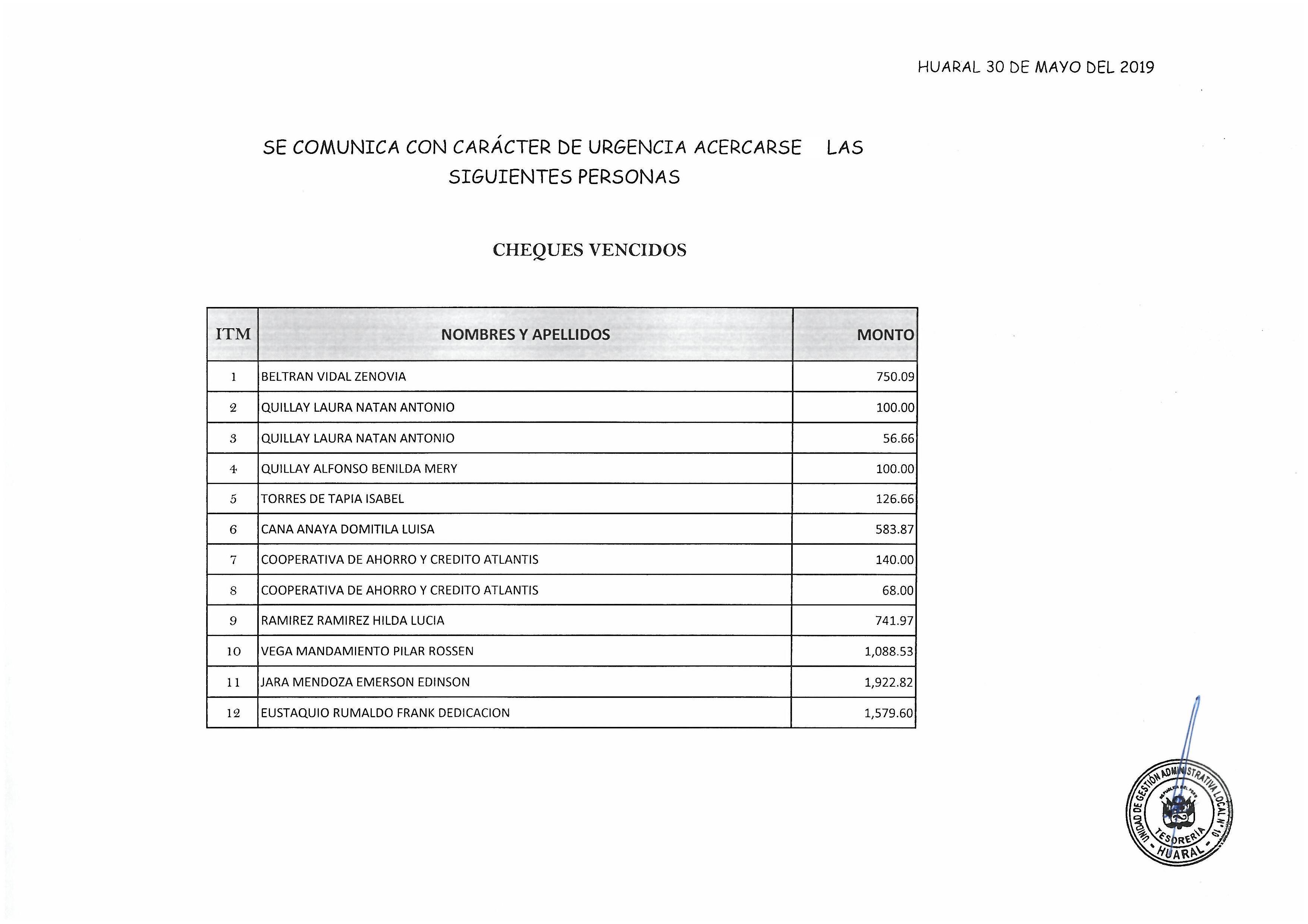 30 May,2019 Comunicados COMMENTS TESORERÍA- CON CARÁCTER DE URGENCIA ACERCARSE LAS SIGUIENTES PERSONAS.