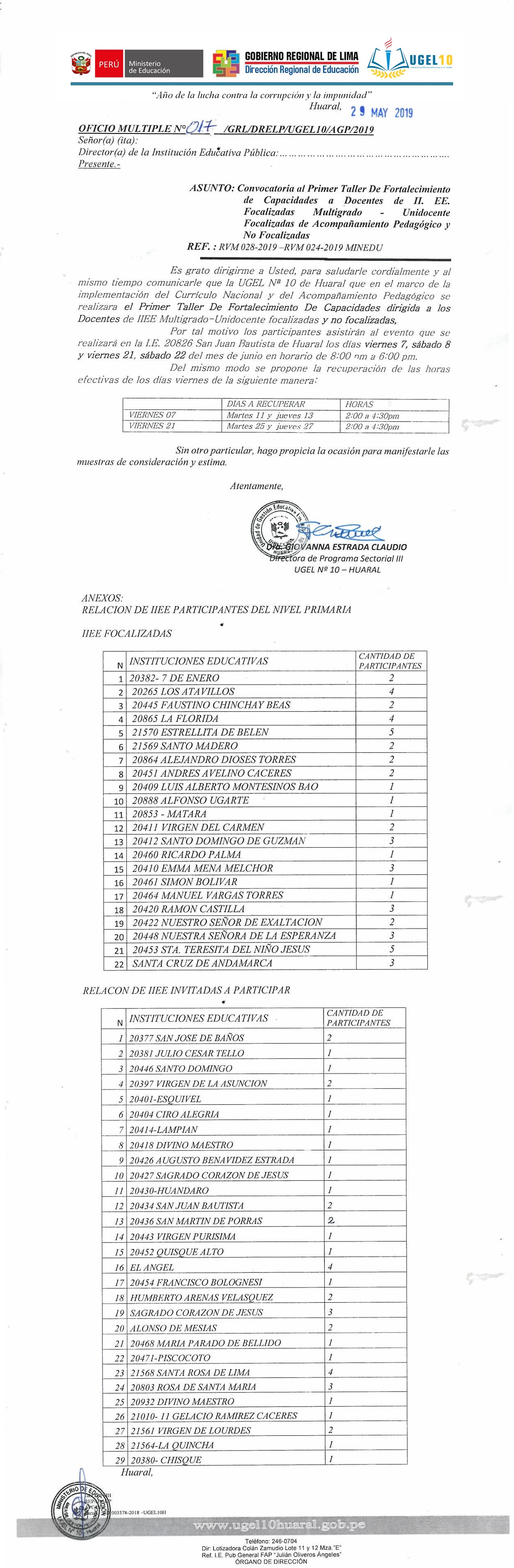 03 Jun,2019 Comunicados COMMENTS Taller de Fortalecimiento de Capacidades a Docentes de II.EE Focalizadas Multigrado - Unidocente Focalizadas de Acompañamiento Pedagógico y No Focalizadas.
