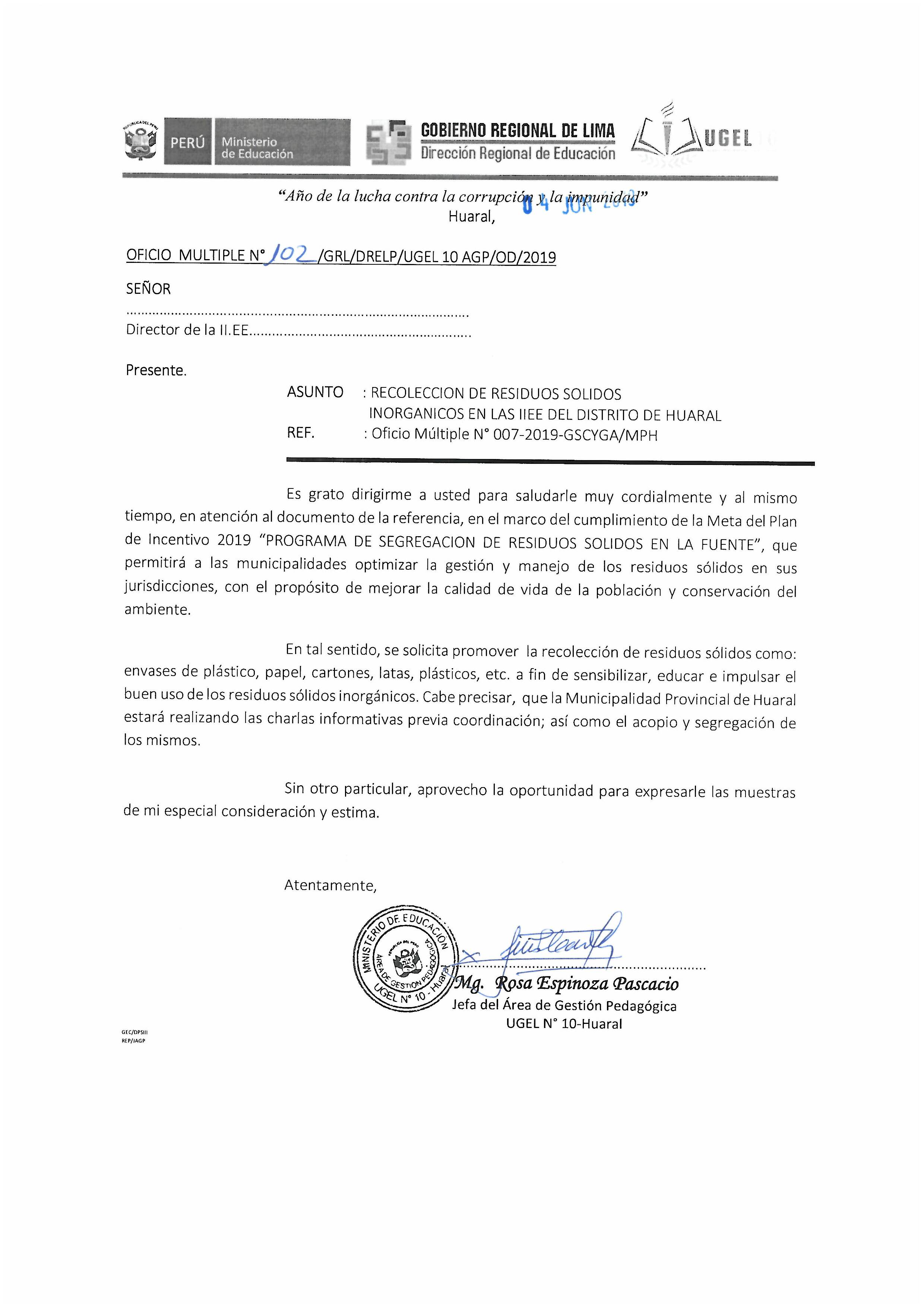 04 Jun,2019 Comunicados COMMENTS RECOLECCION DE RESIDUOS SOLIDOS INORGANICOS EN LAS II.EE DEL DISTRITO DE HUARAL
