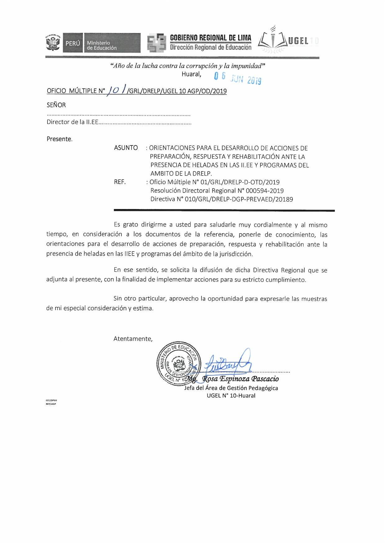 04 Jun,2019 Comunicados COMMENTS ORIENTACIONES PARA EL DESARROLLO DE ACCIONES DE PREPARACION,RESPUESTA Y REHABILITACION ANTE LA PRESENCIA DE HELADAS EN LAS II.EE Y PROGRAMAS DEL AMBITO DE LA DRELP. VER ANEXO