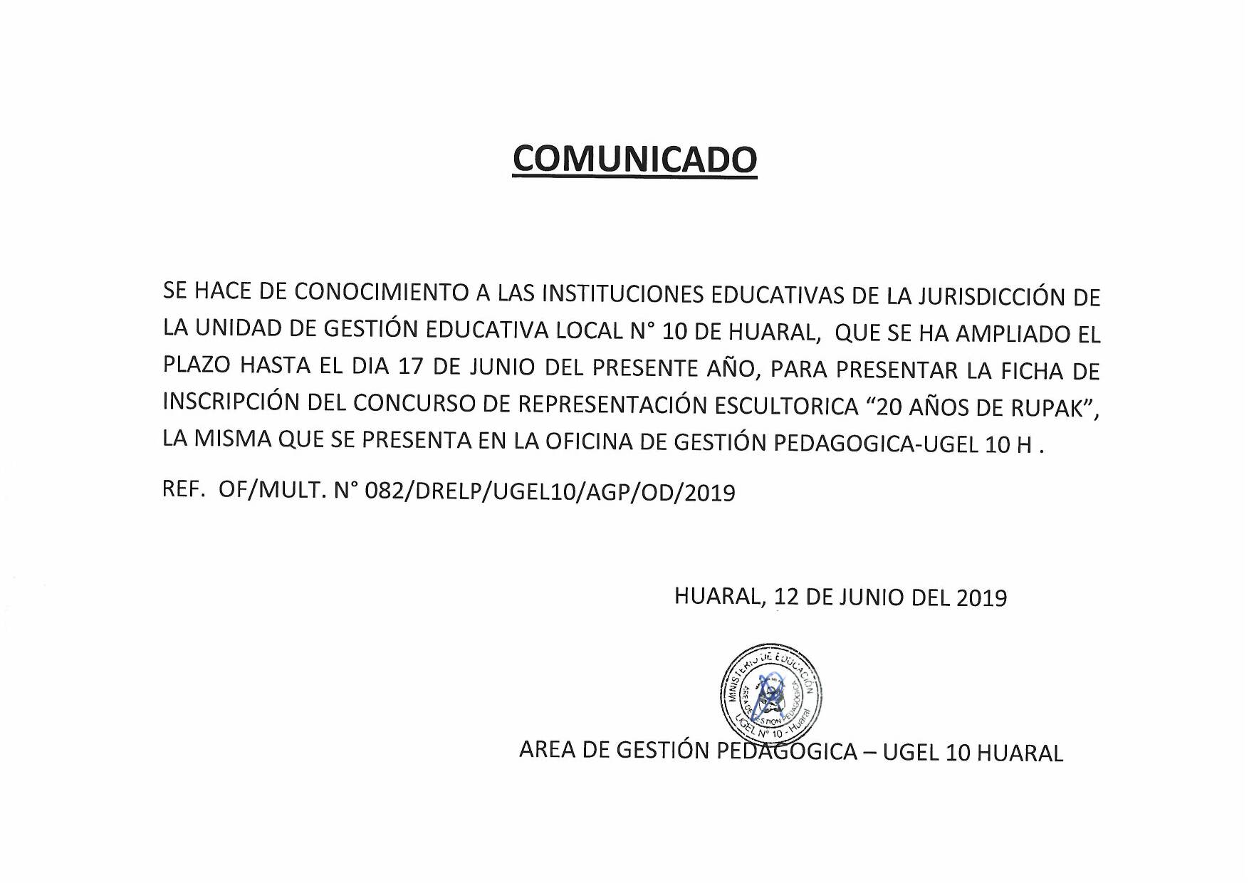12 Jun,2019 Comunicados COMMENTS ÁREA DE GESTIÓN PEDAGÓGICA - PRESENTACIÓN DE LA FICHA DE INSCRIPCIÓN DEL CONCURSO DE REPRESENTACIÓN ESCULTORICA "20 AÑOS DE RUPAK".