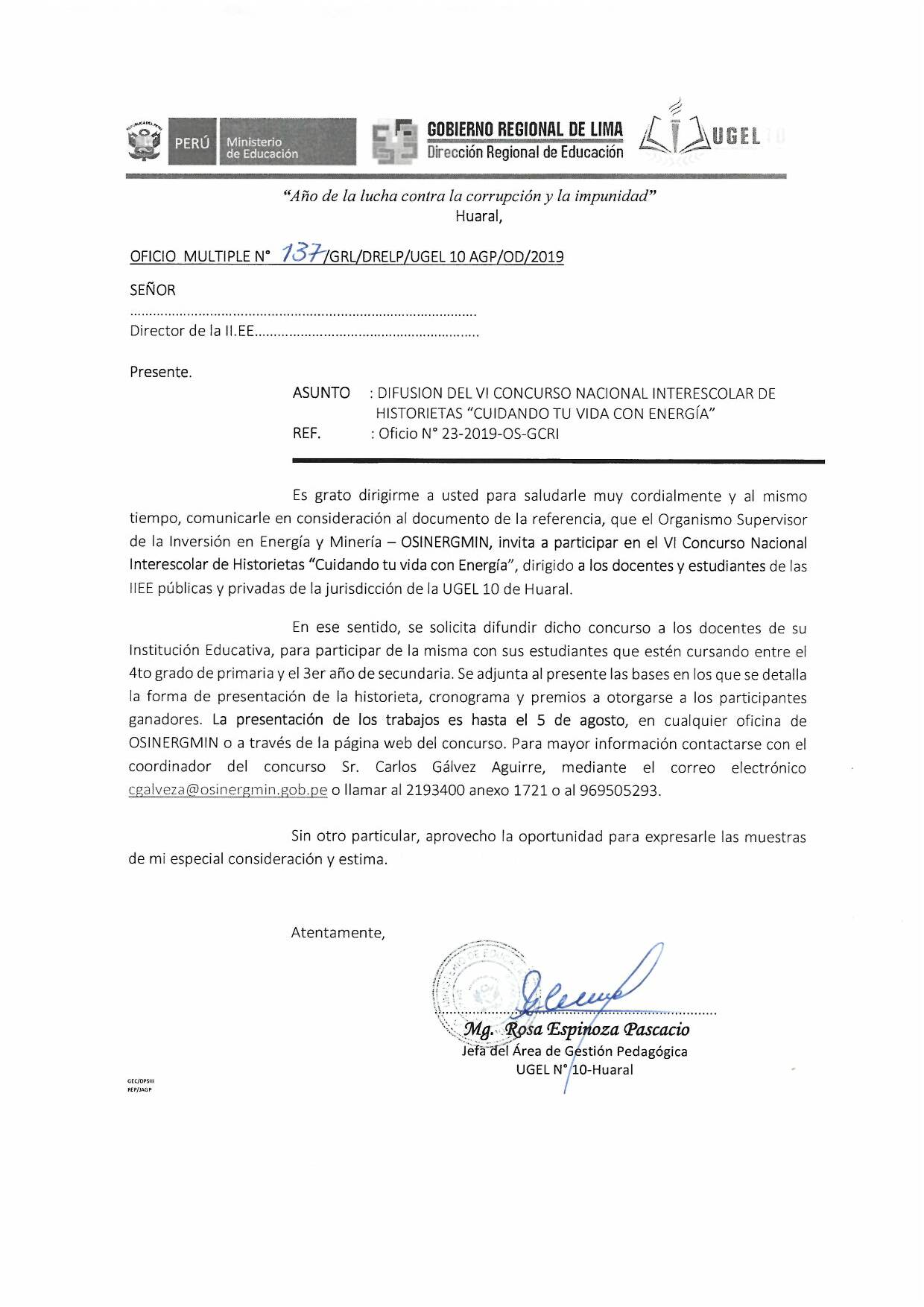 10 Jul,2019 Comunicados COMMENTS DIFUSION DEL VI CONCURSO NACIONAL INTERESCOLAR DE HISTORIETAS "CUIDANDO TU VIDA CON ENERGÍA" VER AFICHE VER BASES DEL CONCURSO