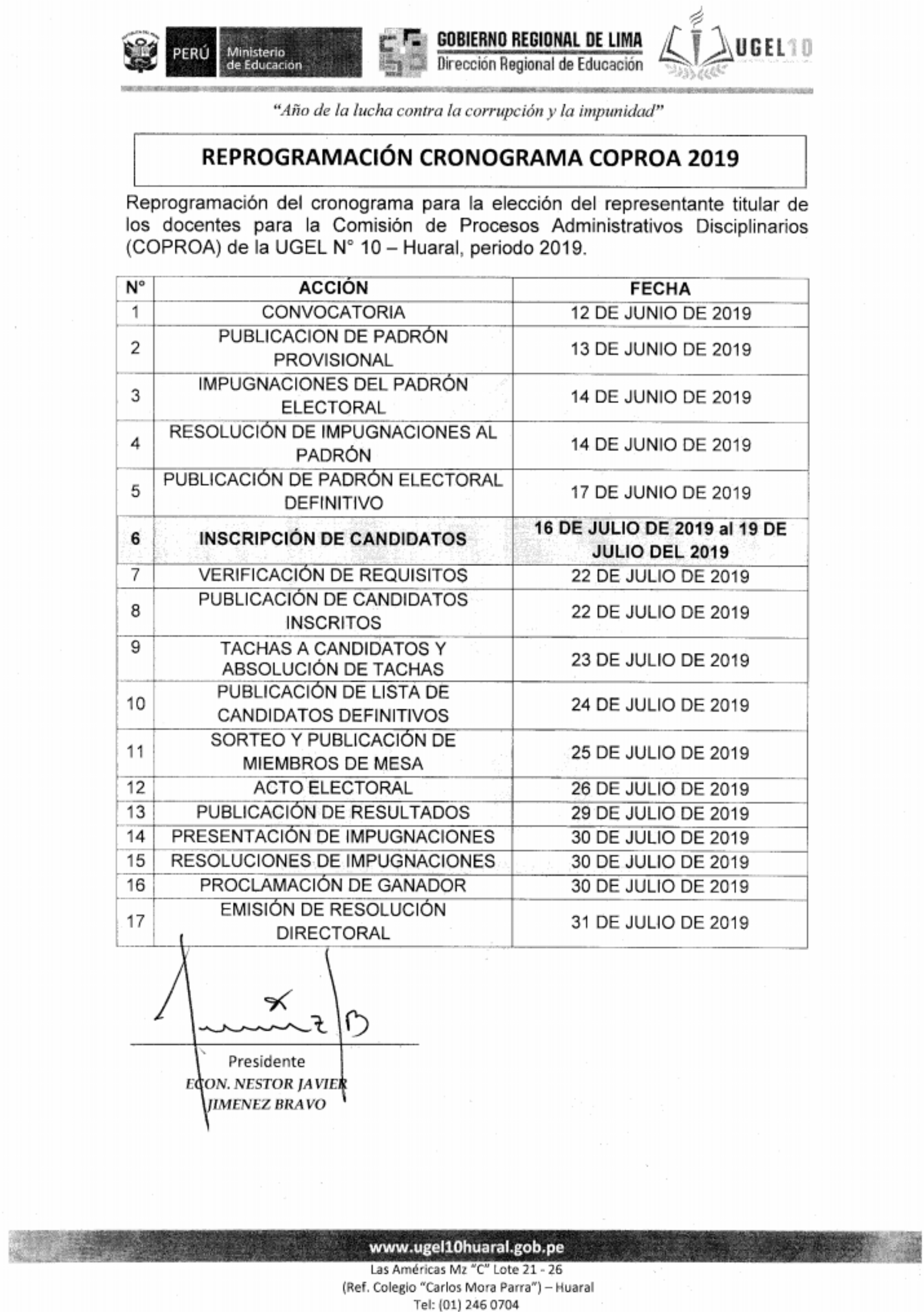 Horarios de atención UGEL N°10: Lunes a Viernes de 08:30 a.m. - 12:30 p.m. y de 14:00 p.m. - 16:30 p.m.