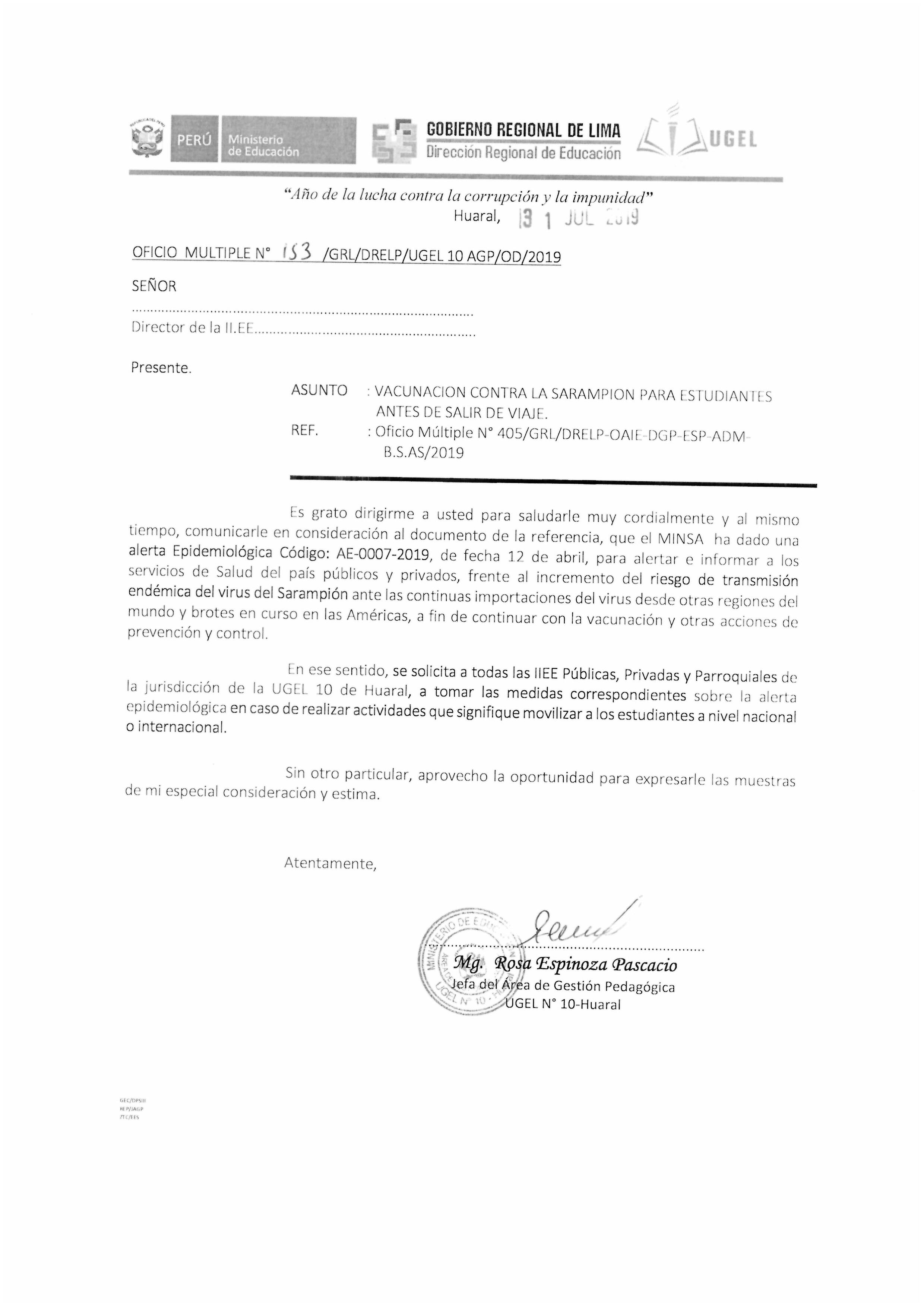 31 Jul,2019 Comunicados COMMENTS VACUNACION CONTRA LA SARAMPIÓN PARA ESTUDIANTES ANTES DE SALIR DE VIAJE.