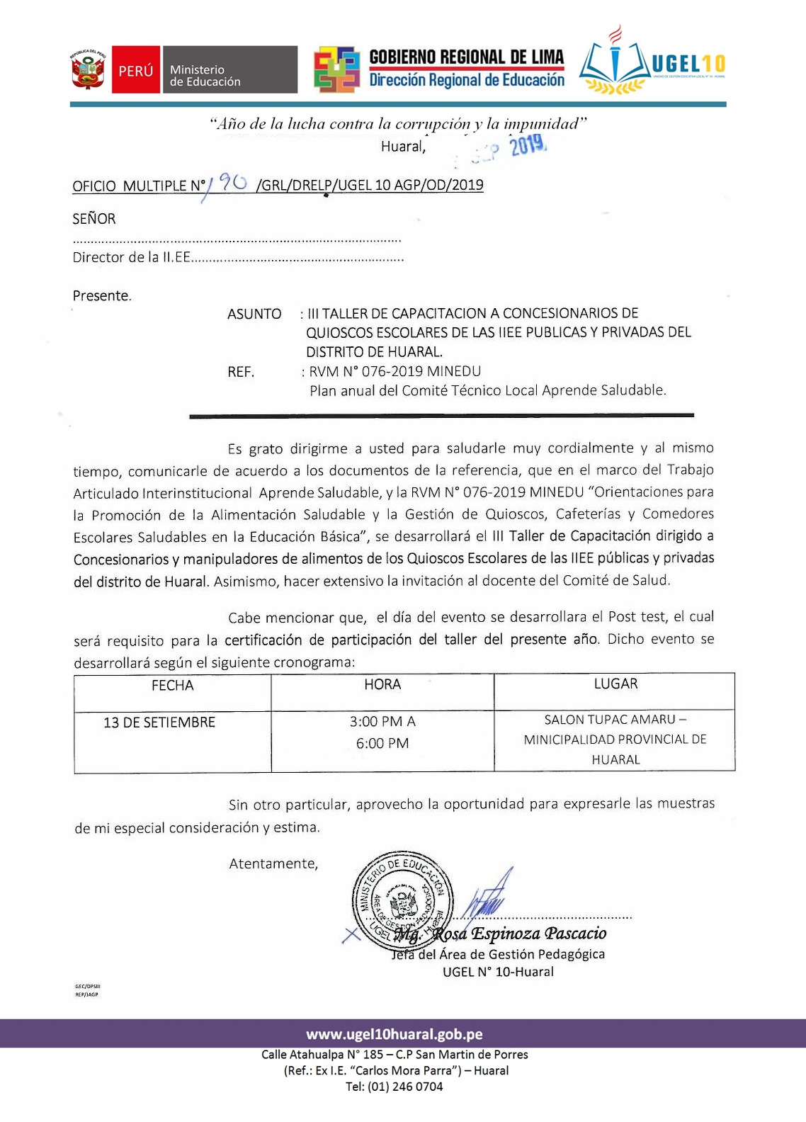 03 Sep,2019 Comunicados COMMENTS III Taller de Capacitación a Concesionarios de Quioscos Escolares de II.EE Públicas y Privadas