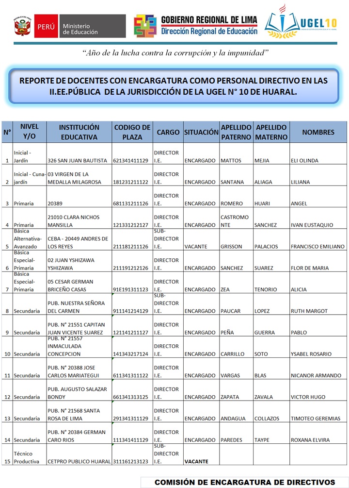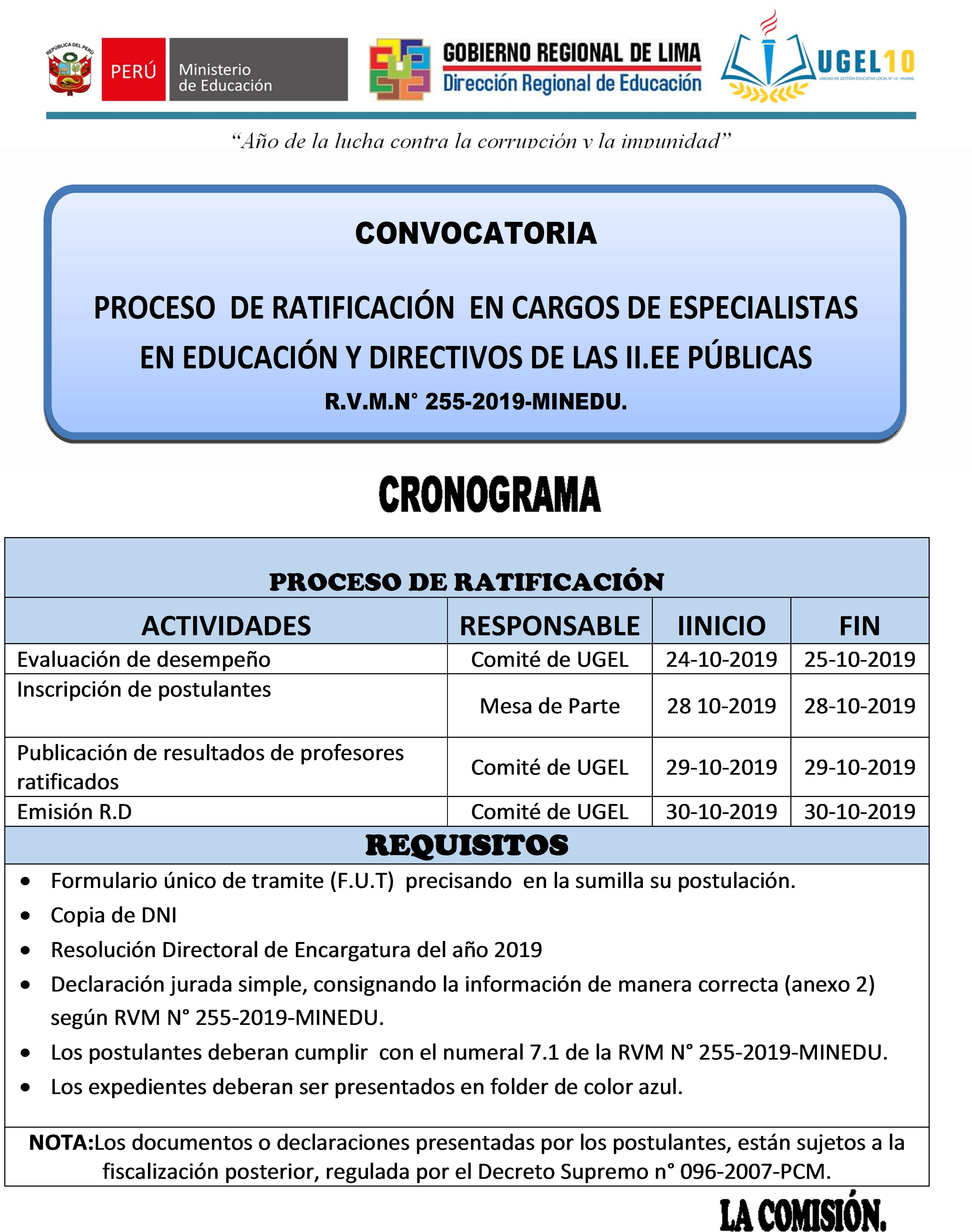 23 Oct,2019 Comunicados COMMENTS Ratificación de Encargatura de Cargo Especialista y Directivos 2020. ⇒DESCARGAR R.V.M N°255-2019-MINEDU