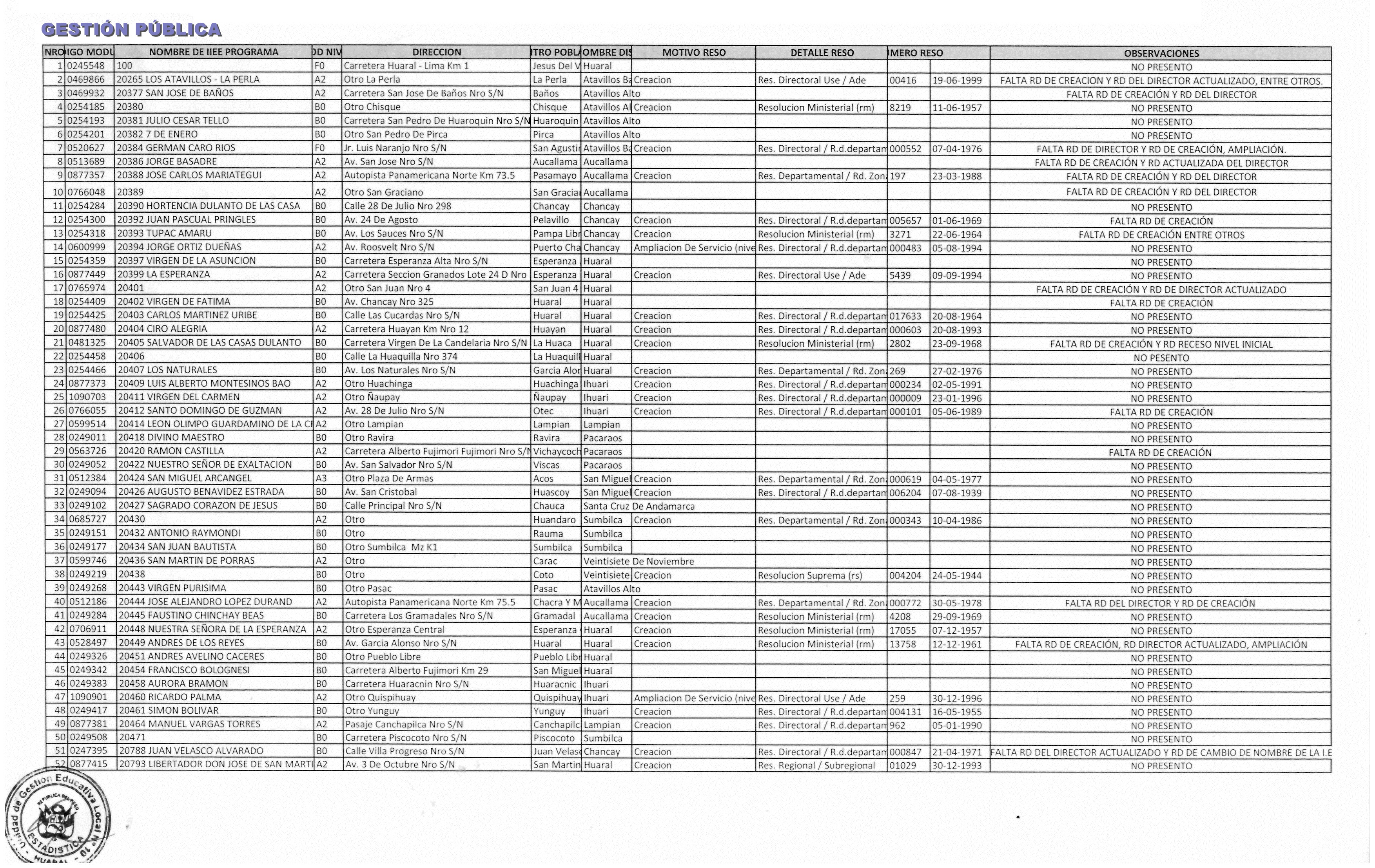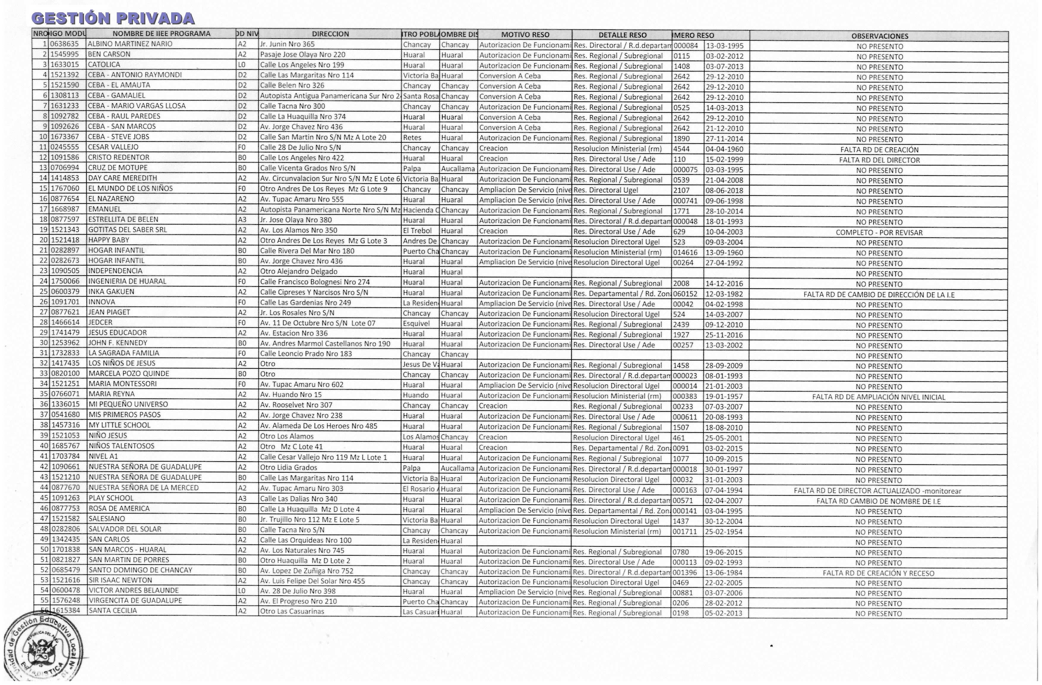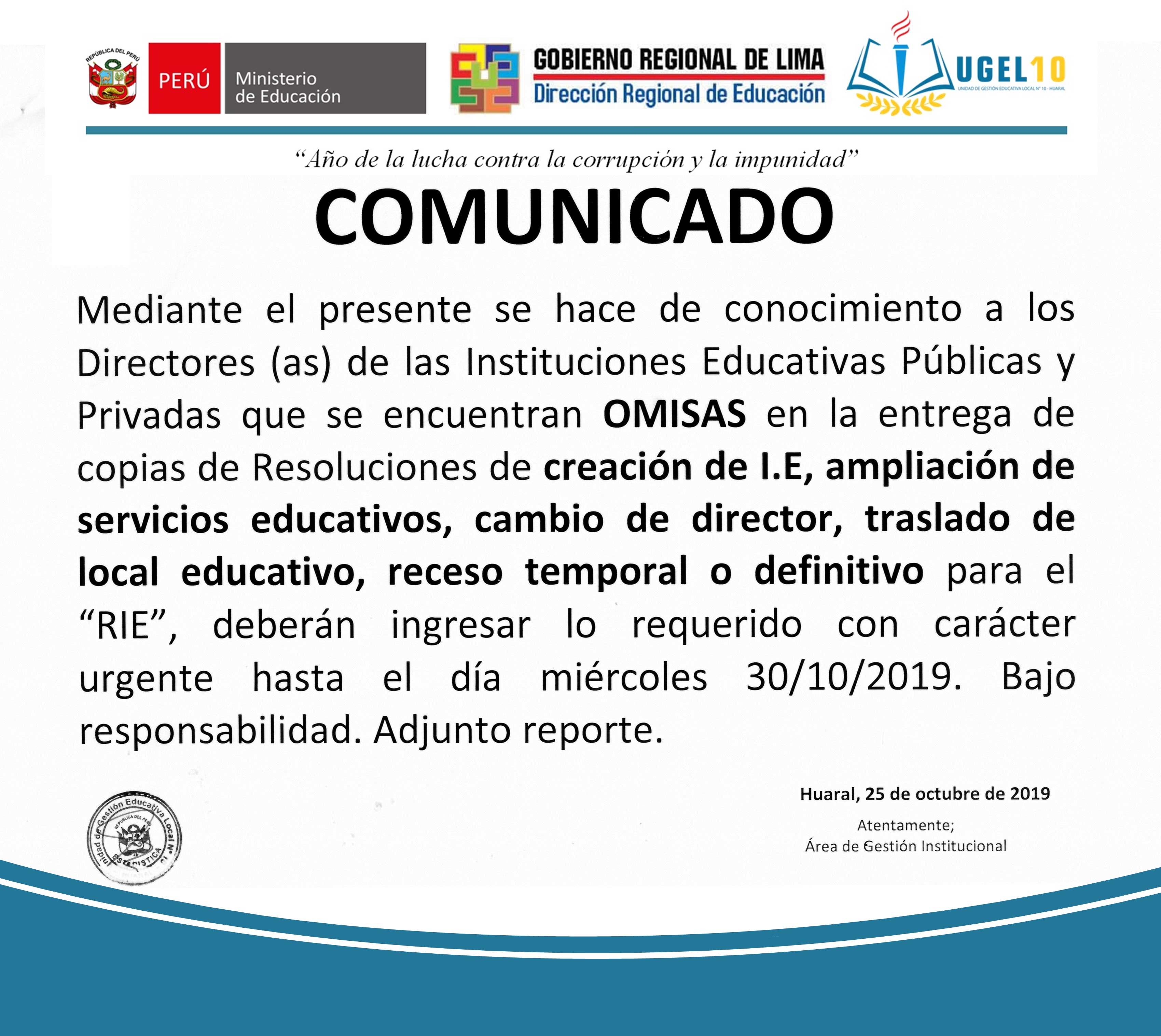 28 Oct,2019 Comunicados COMMENTS II.EE Públicas y Privadas OMISAS en la entrega de lo solicitado. RELACIÓN DE II.EE OMISAS EN LA PRESENTACIÓN DE RESOLUCIONES REQUERIDAS PARA EL RIE.