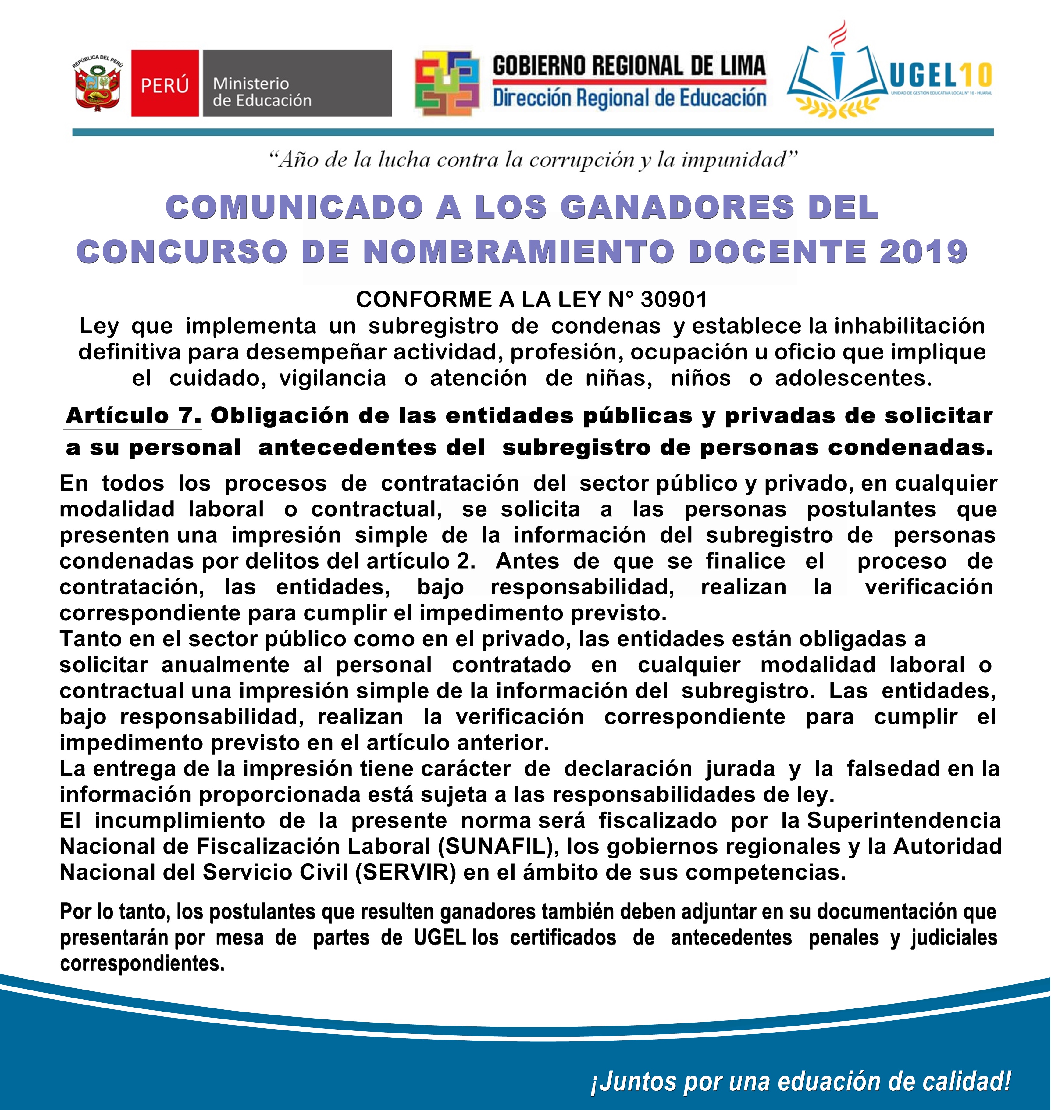 08 Nov,2019 Comunicados COMMENTS Comunicado a los Ganadores del Concurso de Nombramiento Docente 2019.