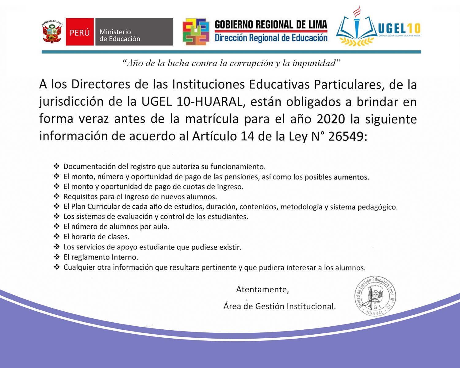 20 Nov,2019 Comunicados COMMENTS Comunicado a los Directivos de las Instituciones Educativas PARTICULARES, de la jurisdicción de la UGEL 10 - Huaral.