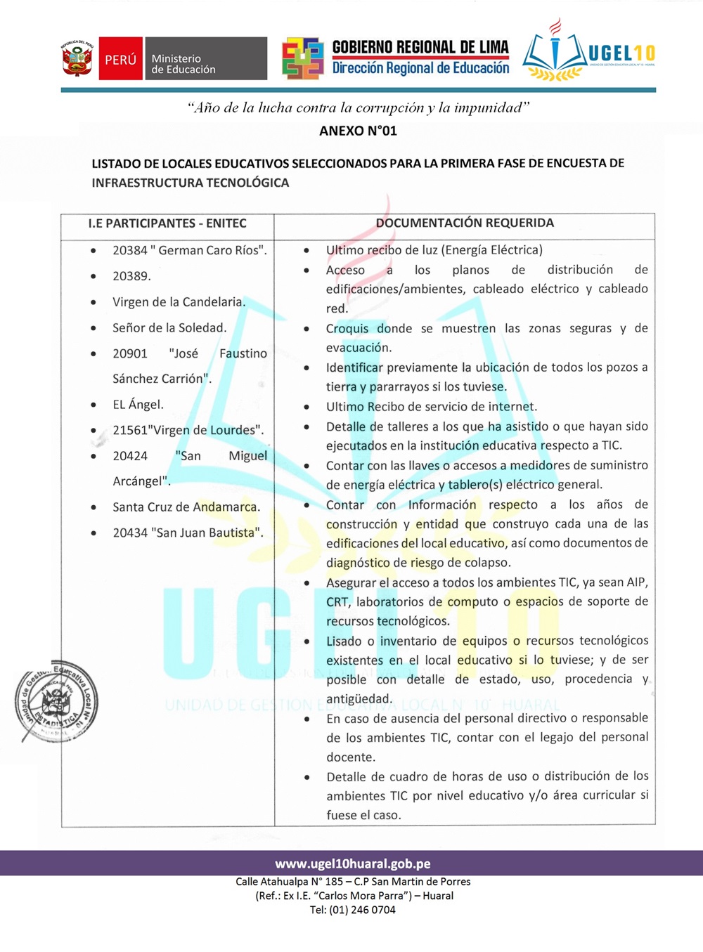 27 Nov,2019 Comunicados COMMENTS Encuesta de Infraestructura Tecnológica 2019. ⇓DESCARGAR OFICIO MÚLTIPLE N° 087-2019-MINEDU/SPE-OSEE-UE