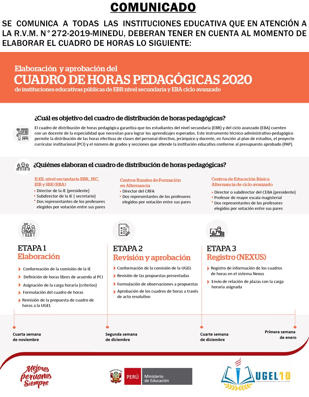 29 Nov,2019 Comunicados COMMENTS Comunicado - Tener en Cuenta al Momento de Elaborar el Cuadro de Horas. ⇓DESCARGAR R.V.M. N°272-2019-MINEDU