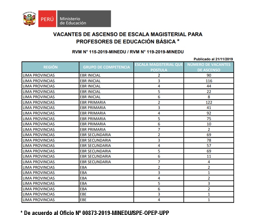 05 Dic,2019 Comunicados COMMENTS Vacantes de Región Lima de Ascenso de Escala Magisterial Para Profesores de Educación Básica.