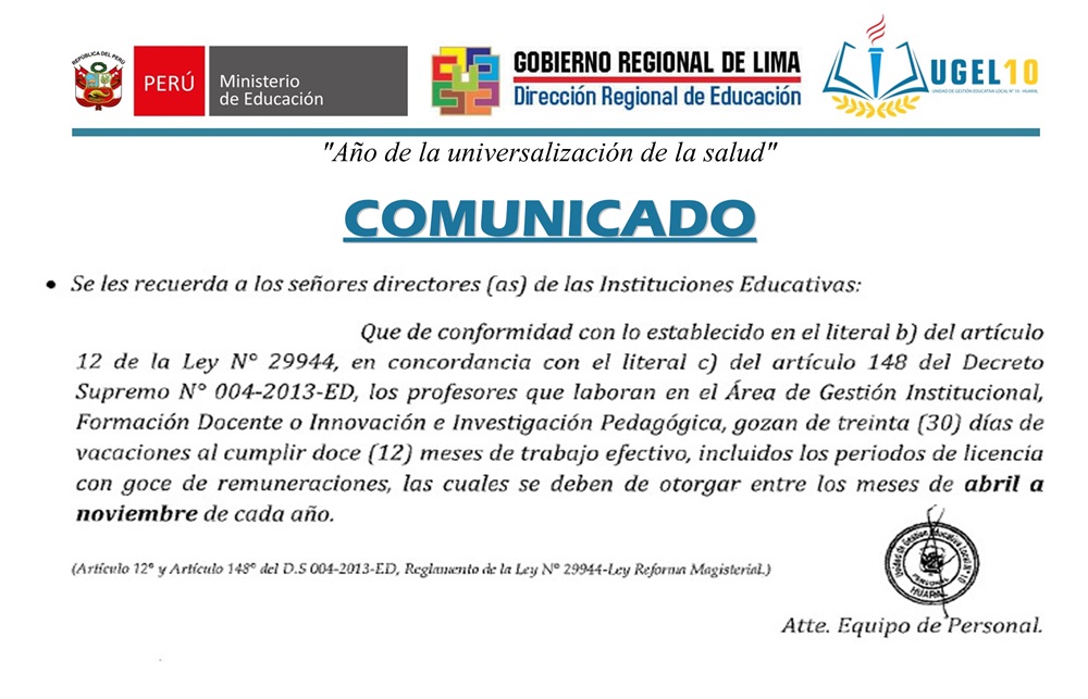 10 Ene,2020 Comunicados COMMENTS Comunicado a los Directores(as) de las II.EE educativas Públicas del Equipo de Personal.