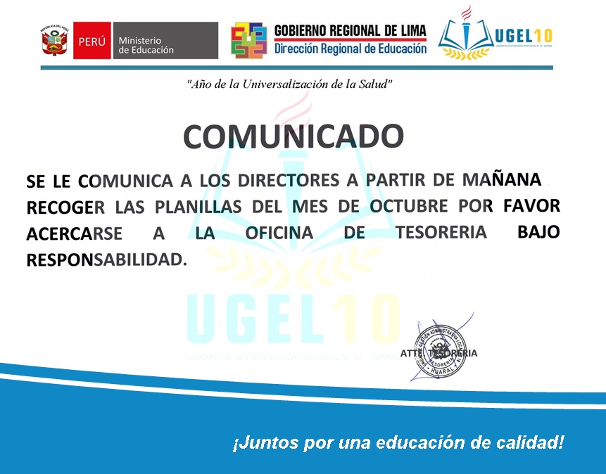 Horarios de atención UGEL N°10: Lunes a Viernes de 08:30 a.m. - 12:30 p.m. y de 14:00 p.m. - 16:30 p.m.