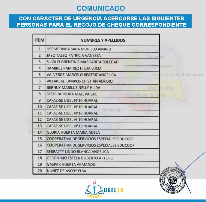 17 Feb,2020 Comunicados COMMENTS Acercarse las Siguientes Personas Para el Recojo de Cheque Correspondiente