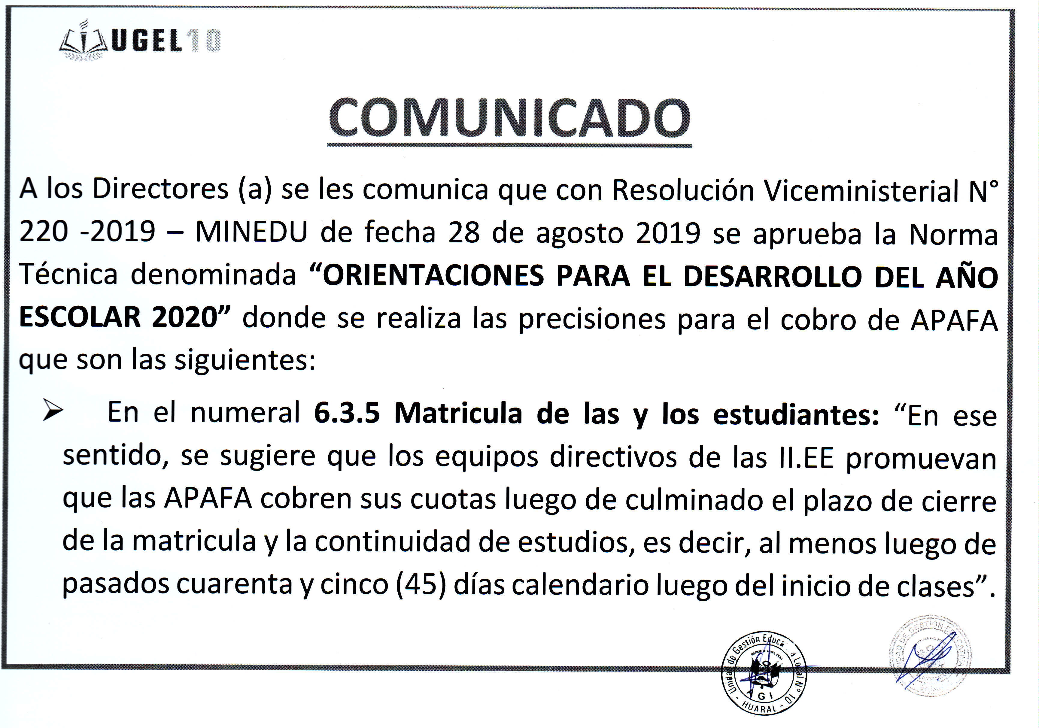20 Feb,2020 Comunicados COMMENTS APROBACIÓN DE LA NORMA TÉCNICA "ORIENTACIONES PARA EL DESARROLLO DEL AÑO ESCOLAR 2020"