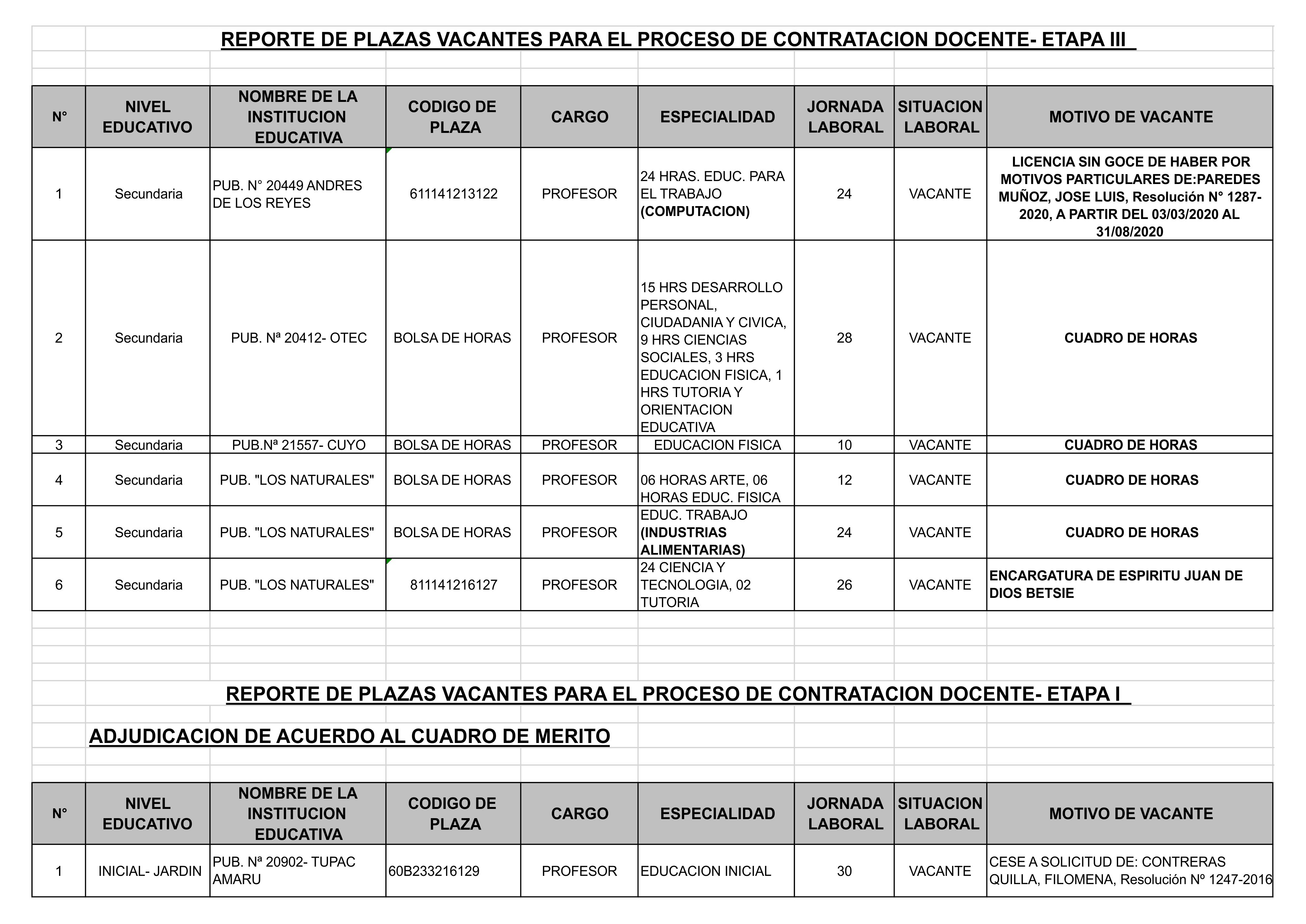 08 May,2020 Comunicados COMMENTS REPORTE DE PLAZAS VACANTES PARA EL PROCESO DE CONTRATACIÓN DOCENTE DESCARGAR REPORTE DE PLAZAS VACANTES