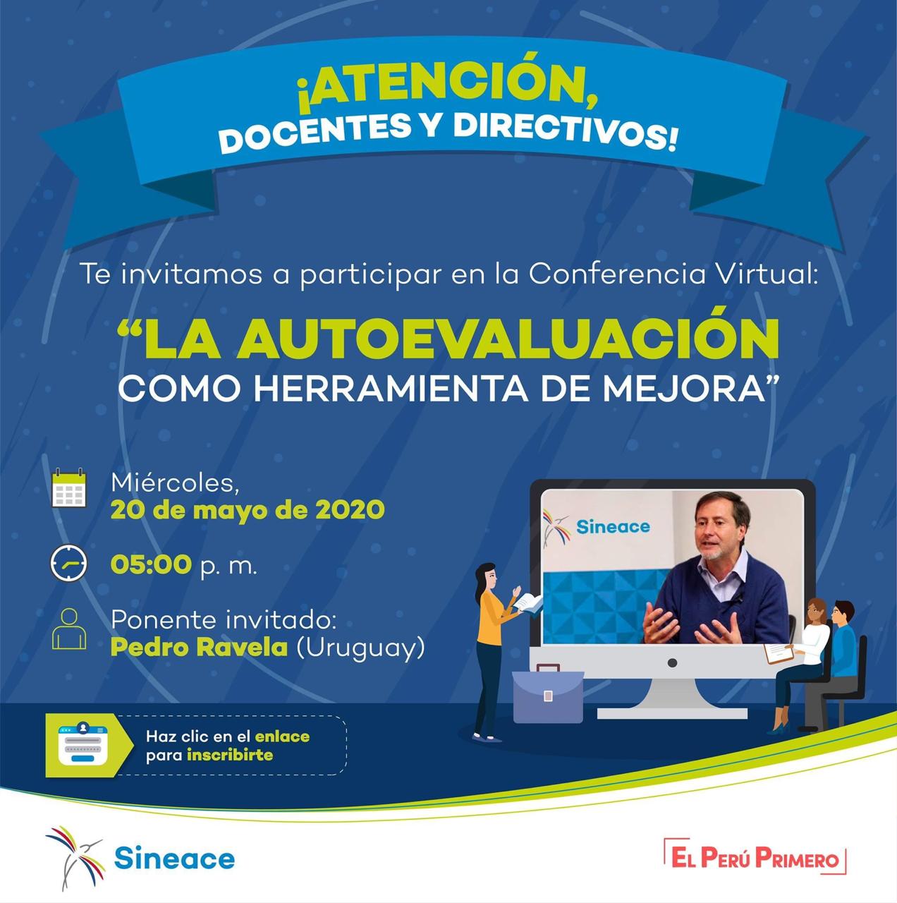 08 May,2020 Comunicados COMMENTS CONFERENCIA VIRTUAL: LA AUTOEVALUACIÓN COMO HERRAMIENTA DE MEJORA Registrarse en el siguiente enlace:http://eventos.sineace.gob.pe/registrate/conferencia-virtual-la-autoevaluacion-como-herramienta-de-mejora?fbclid=IwAR1QhL1UIAQXg-RF05A4Ow5ZudBkUMz3EpJEzJZfICB5DAmjpYC4D4Juyfo