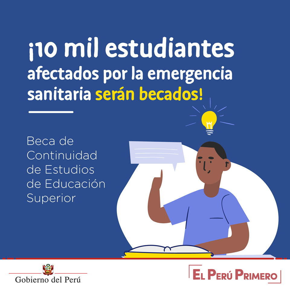 Para asegurar que las y los estudiantes de universidades privadas e institutos públicos y privados afectados por la emergencia sanitaria continúen sus estudios, el Ministerio de Educación del Perú, a través de Pronabec Perú, lanza la Beca de Continuidad de Estudios de Educación Superior.