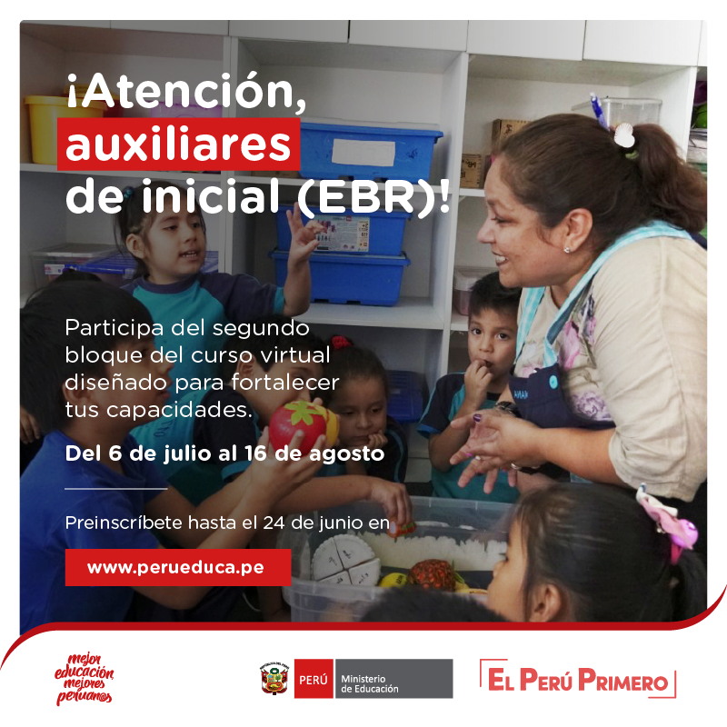 ? Empezó la preinscripción al segundo bloque del curso virtual para auxiliares nombrados y contratados del nivel inicial (EBR), que organiza #PerúEduca.