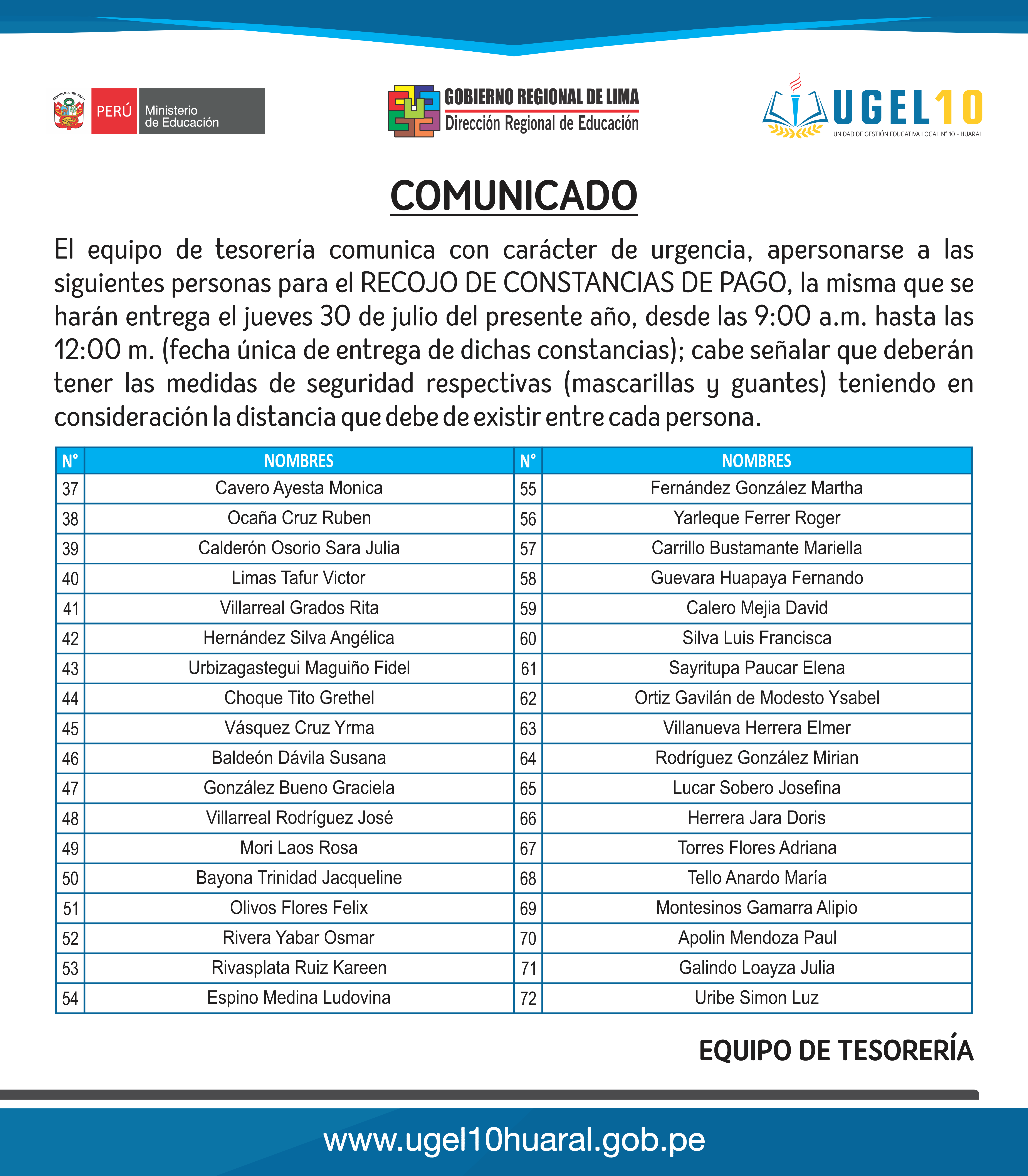 29 Jul,2020 Comunicados COMMENTS COMUNICADO: RECOJO DE CONSTANCIAS DE PAGO PARA EL DÍA JUEVES 30 DE JULIO (Parte 2)