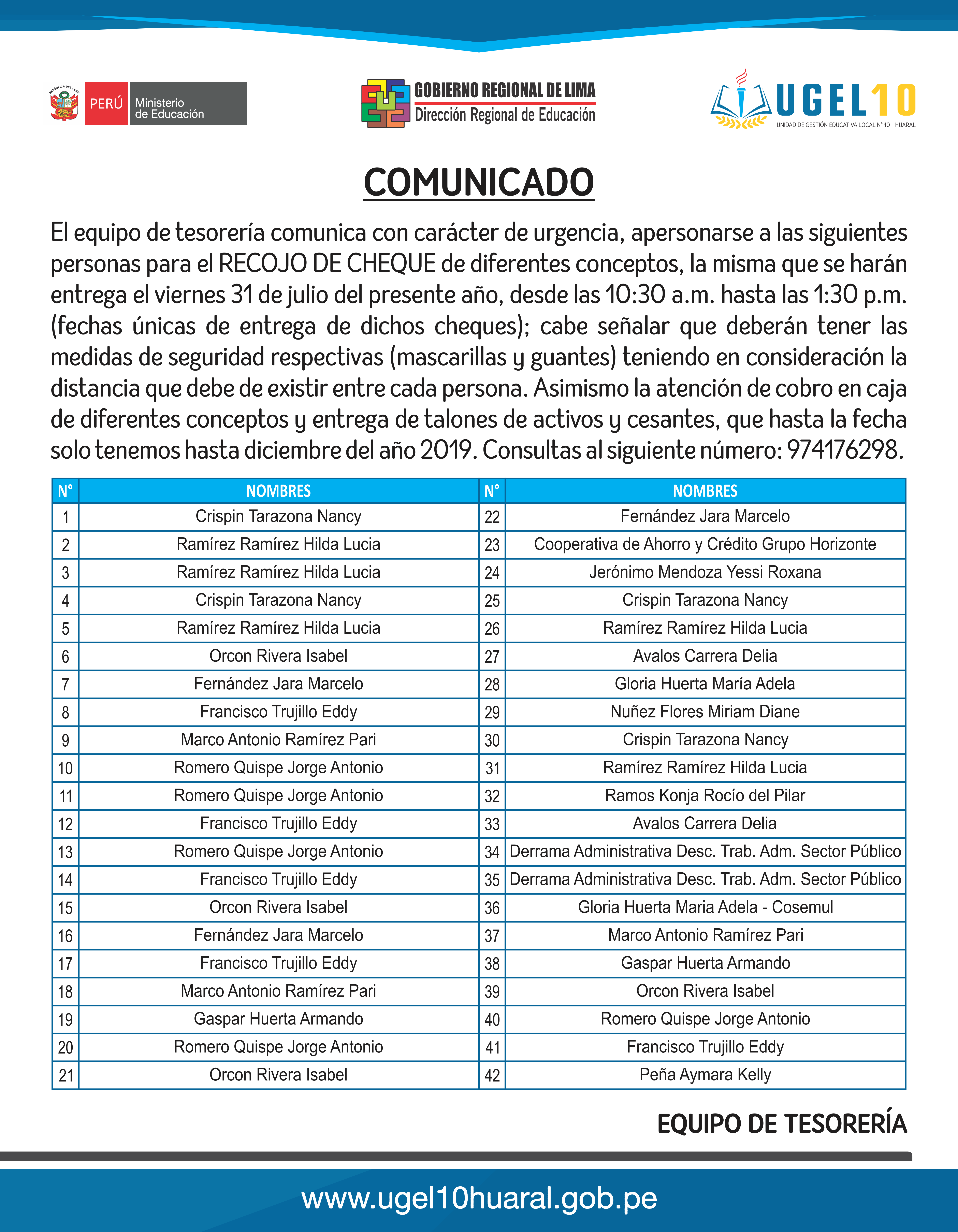 30 Jul,2020 Comunicados COMMENTS COMUNICADO: RECOJO DE CHEQUE PARA EL DÍA VIERNES 31 DE JULIO (Parte 1)