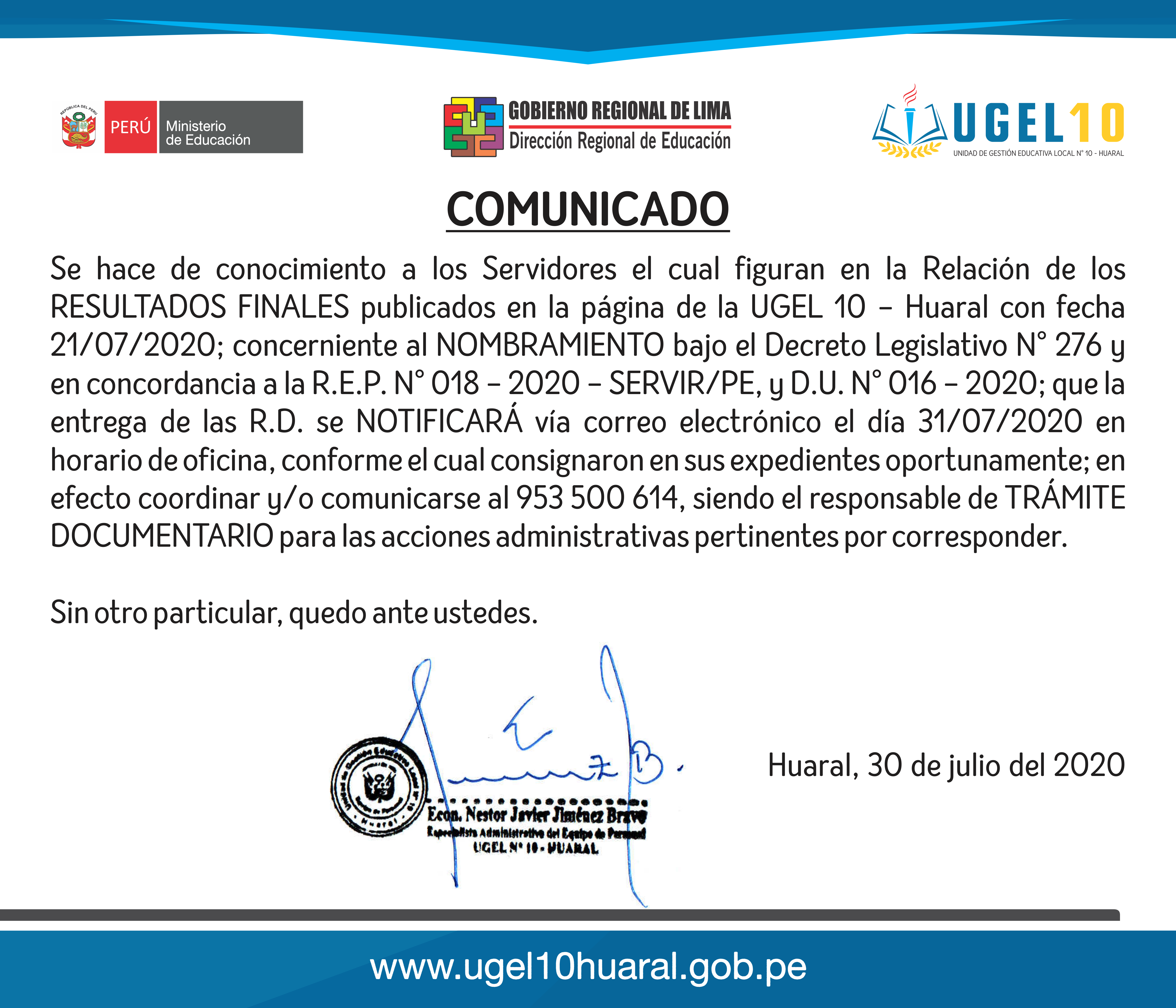 30 Jul,2020 Comunicados COMMENTS COMUNICADO SOBRE LA ENTREGA DE LAS R.D. A LOS SERVIDORES QUE FIGURAN EN LA RELACIÓN DE LOS RESULTADOS FINALES PUBLICADOS EL 21/07/2020