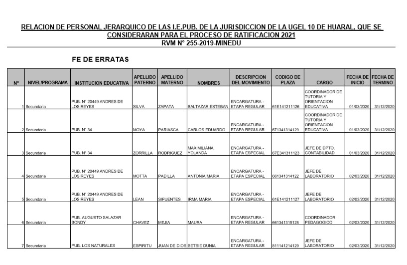 04 Nov,2020 Comunicados COMMENTS FE DE ERRATAS: Relación de personal jerárquico para proceso de ratificación