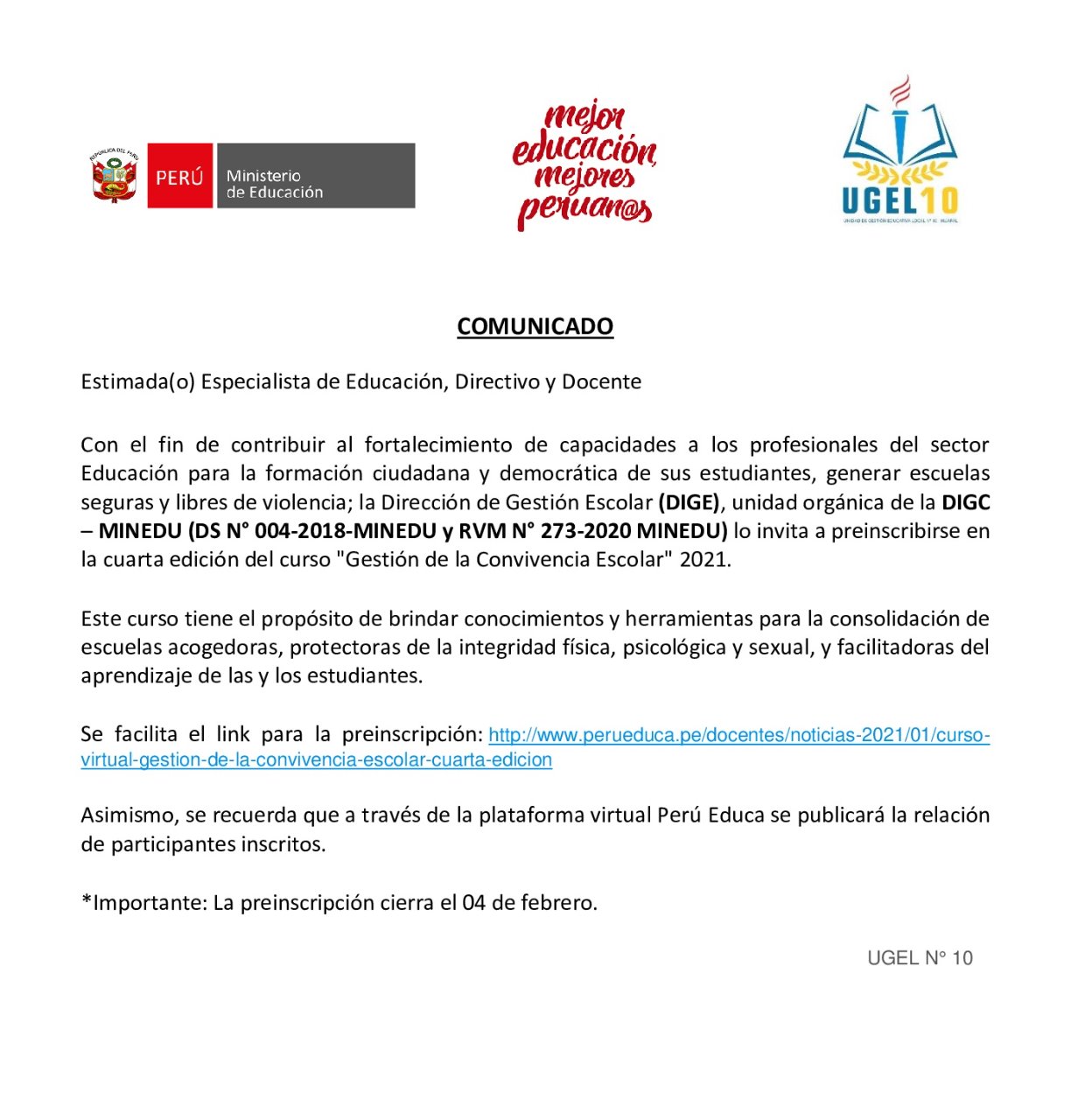 ✅VER LINK PARA LA PREINSCRIPCIÓN ➡️ http://www.perueduca.pe/docentes/noticias-2021/01/curso-virtual-gestion-de-la-convivencia-escolar-cuarta-edicion