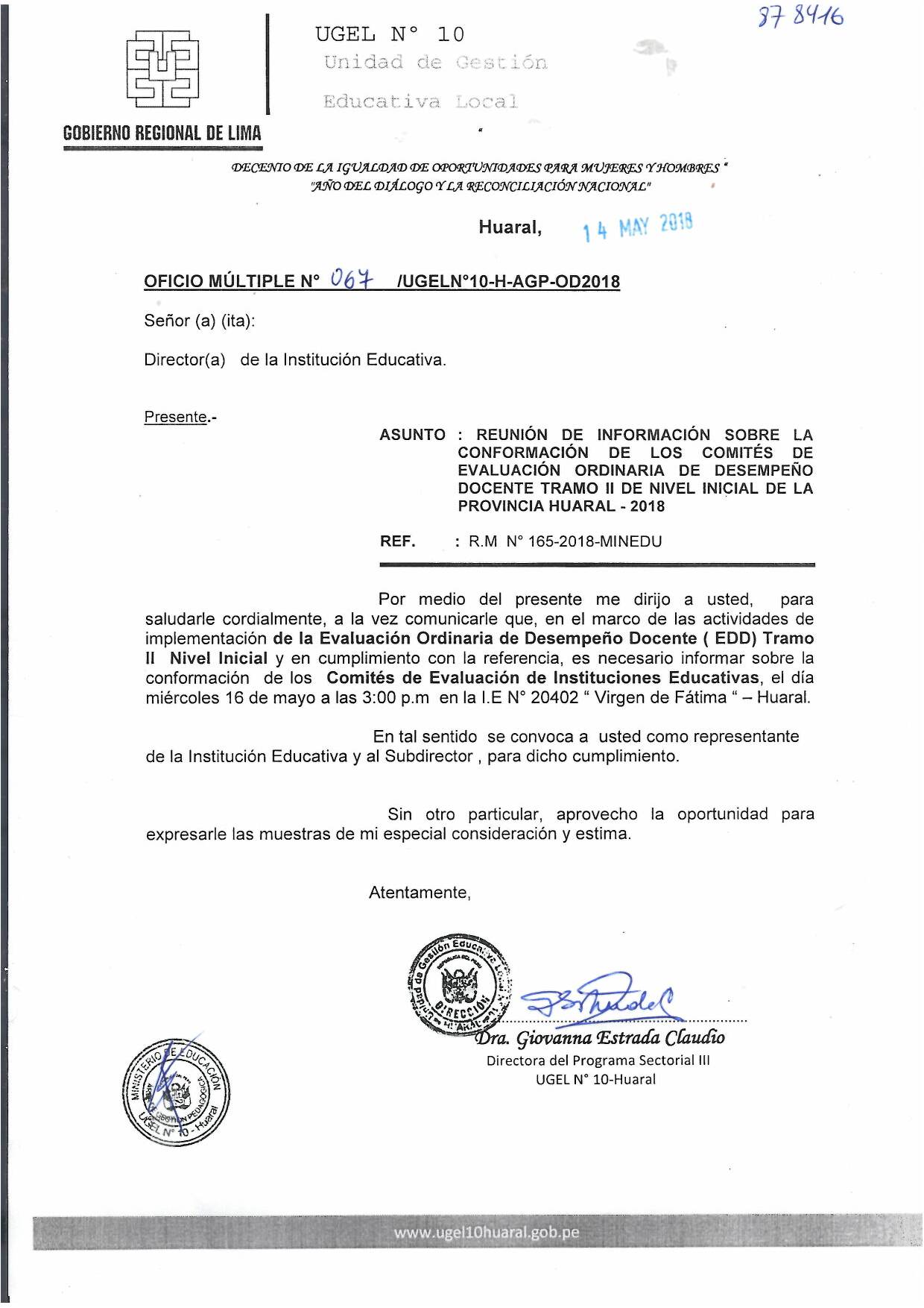 14 May,2018 Comunicados COMMENTS Reunión de información sobre la conformación de los comités de evaluación ordinaria de desempeño docente tramo II de nivel inicial de la provincia de Huaral - 2018