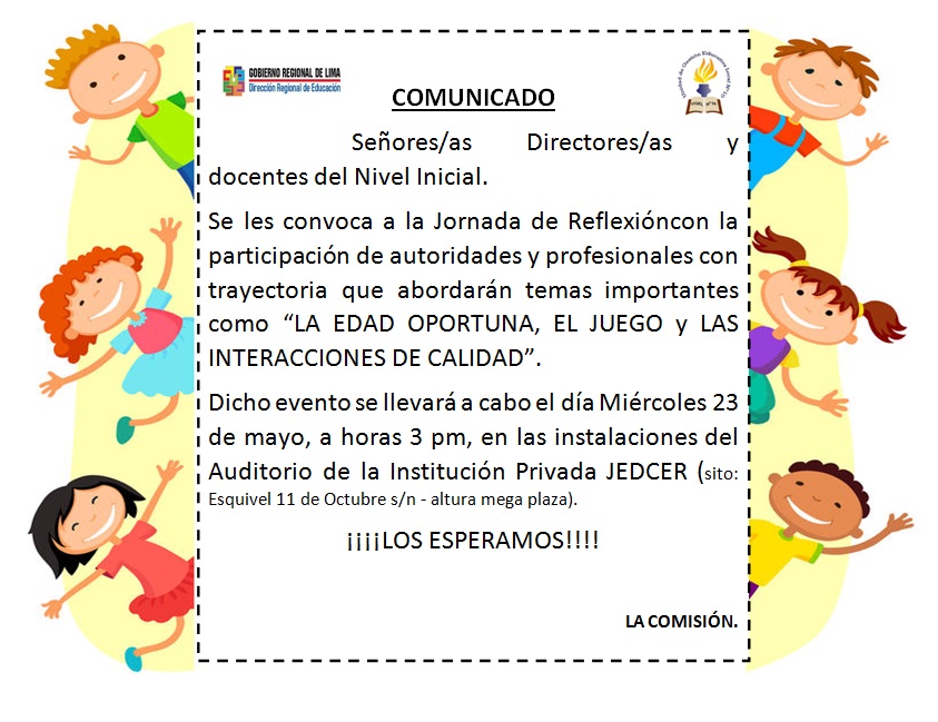 21 May,2018 Comunicados COMMENTS Jornada de Reflexión "La Edad Oportuna, el Juego y las interacciones de Calidad"