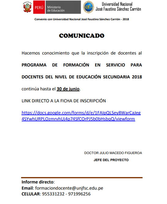 15 Jun,2018 Comunicados COMMENTS Programa de Formación en Servicio Para Docentes del Nivel de Educación Secundaria 2018