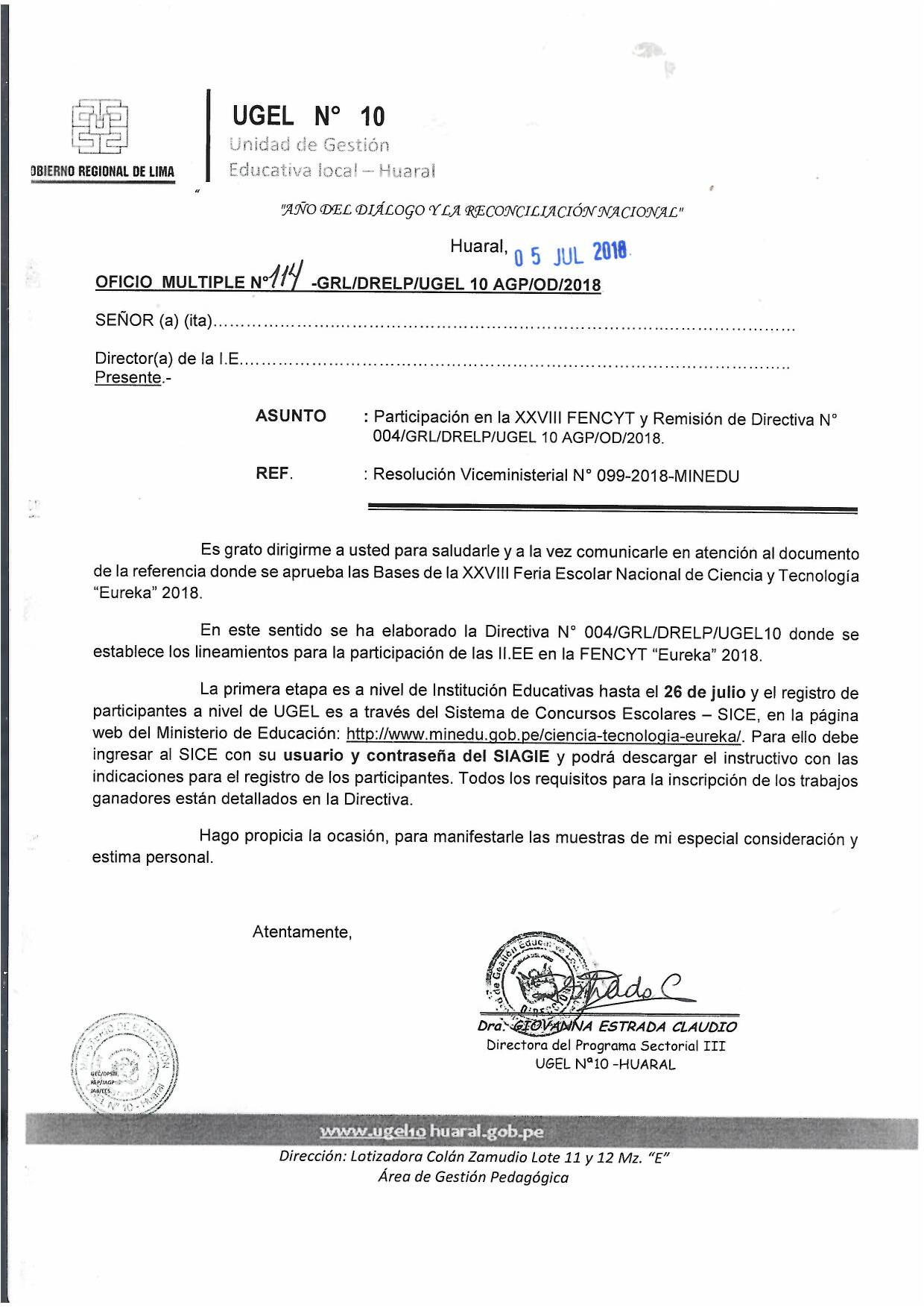 06 Jul,2018 Comunicados COMMENTS Participación en la XXVIII FENCYT y Remisión de Directiva N°004 Clic para ver Directiva N°004/GRL/DREL/UGEL10AGP/OD/2018