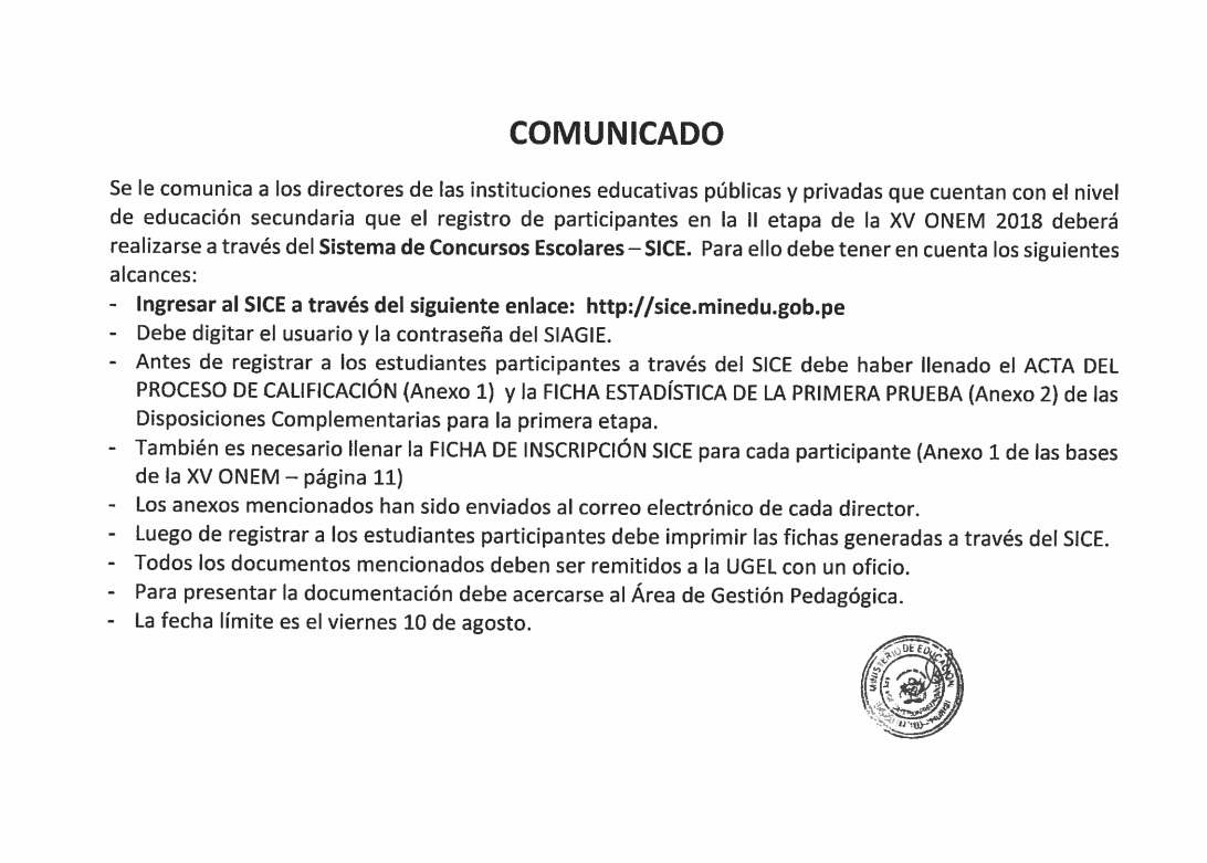 30 Jul,2018 Comunicados COMMENTS Comunicado Registro de participantes en la II etapa de la XV ONEM 2018.
