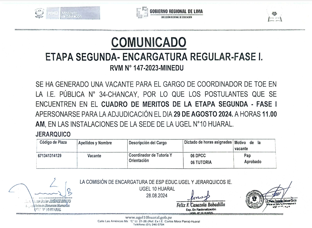 28 Ago,2024 Comunicados COMMENTS COMUNICADO: 2da Etapa - Encargatura Regular Fase I ✅️VER COMUNICADO ➡️ https://drive.google.com/file/d/1KgRTRcXDnZBZ-yeP-H5aPvKhTt332DVF/view?usp=sharing