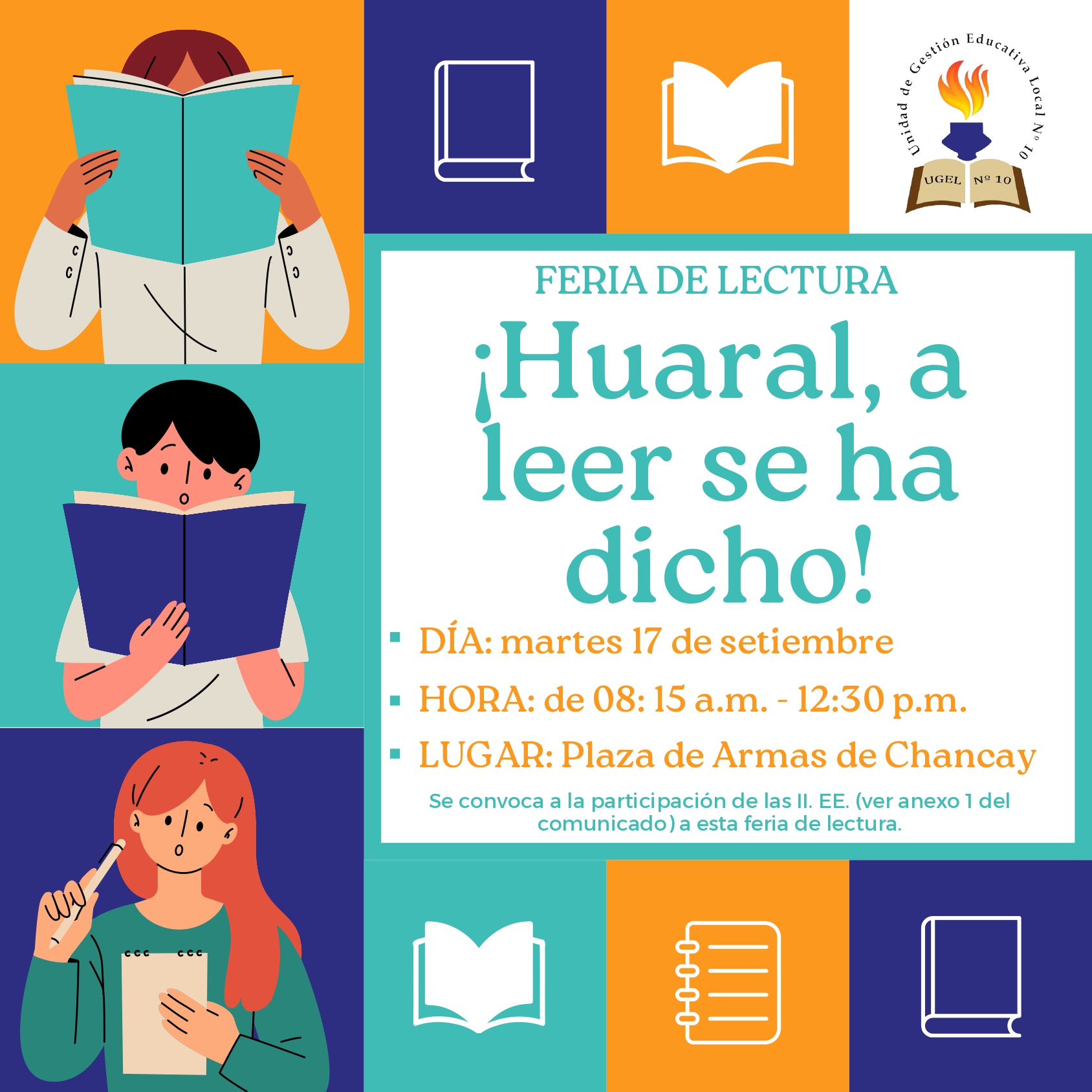 13 Sep,2024 Comunicados COMMENTS INVITACIÓN A PARTICIPAR EN LA FERIA DE LECTURA ¡HUARAL, A LEER SE HA DICHO! ✅️VER COMUNICADO ➡️ https://drive.google.com/file/d/16erOBf03uy6VgXI4LPgJcfpI3W68Njrq/view?usp=sharing