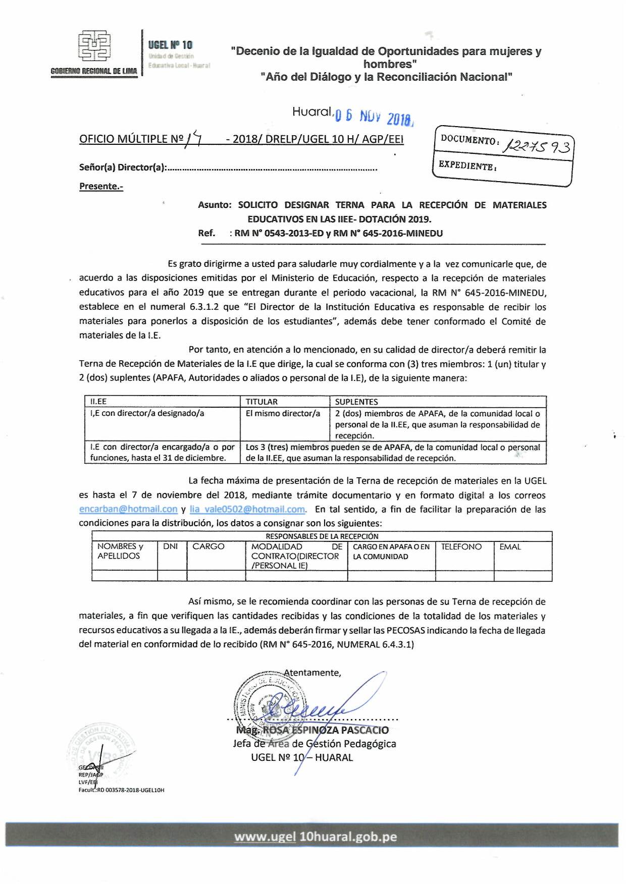 07 Nov,2018 Comunicados COMMENTS Designar Terna para la Recepción de Materiales Educativos en las II.EE - Dotación 2019.