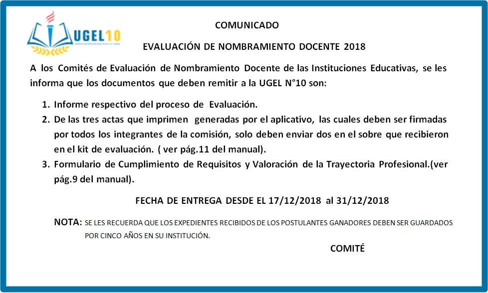 10 Dic,2018 Comunicados COMMENTS Comunicado para los Comités de Evaluación de Nombramiento Docente 2018.