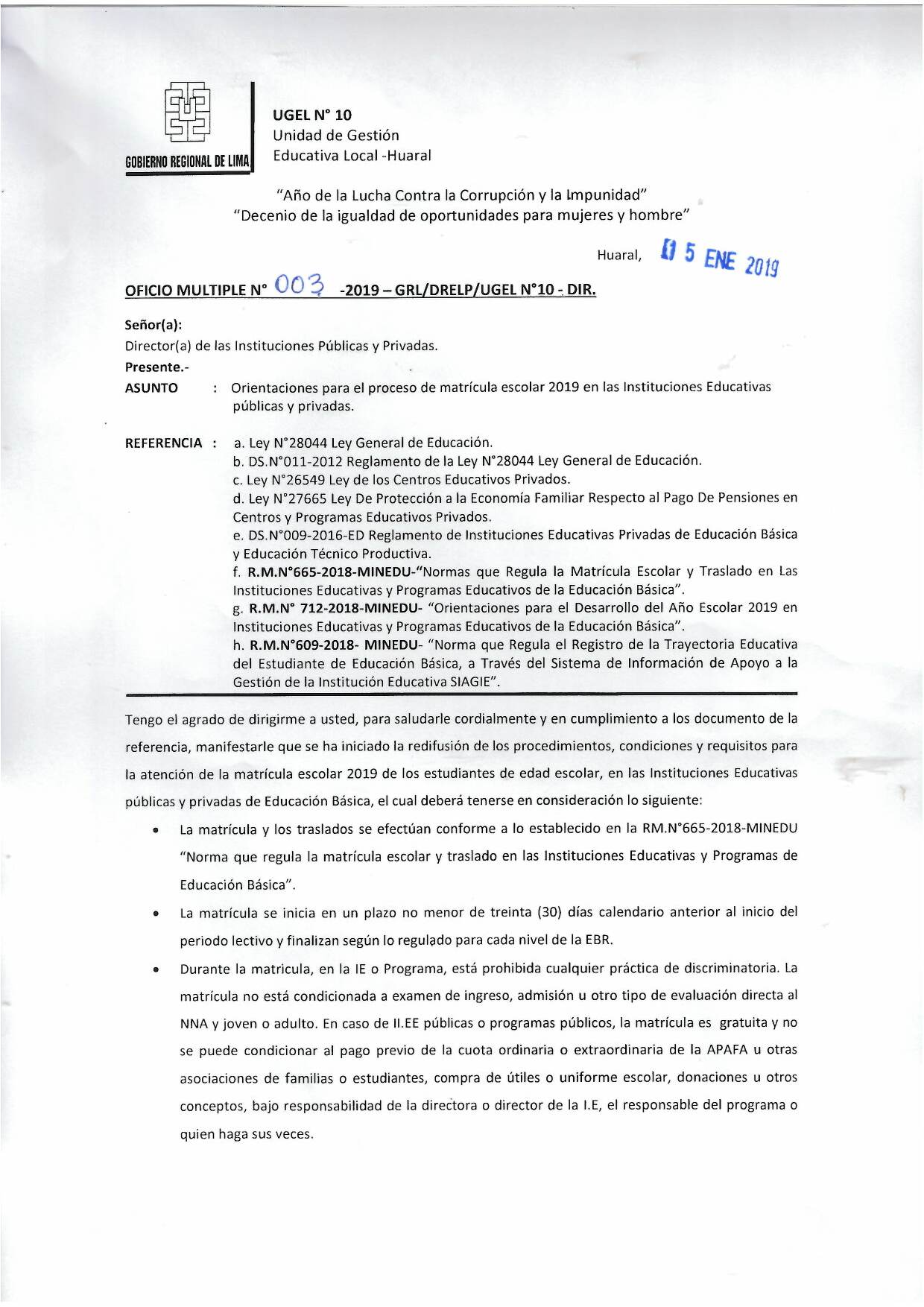 29 Ene,2019 Comunicados COMMENTS Orientaciones para el Proceso de Matrícula Escolar 2019 en las II.EE Públicas y Privadas.