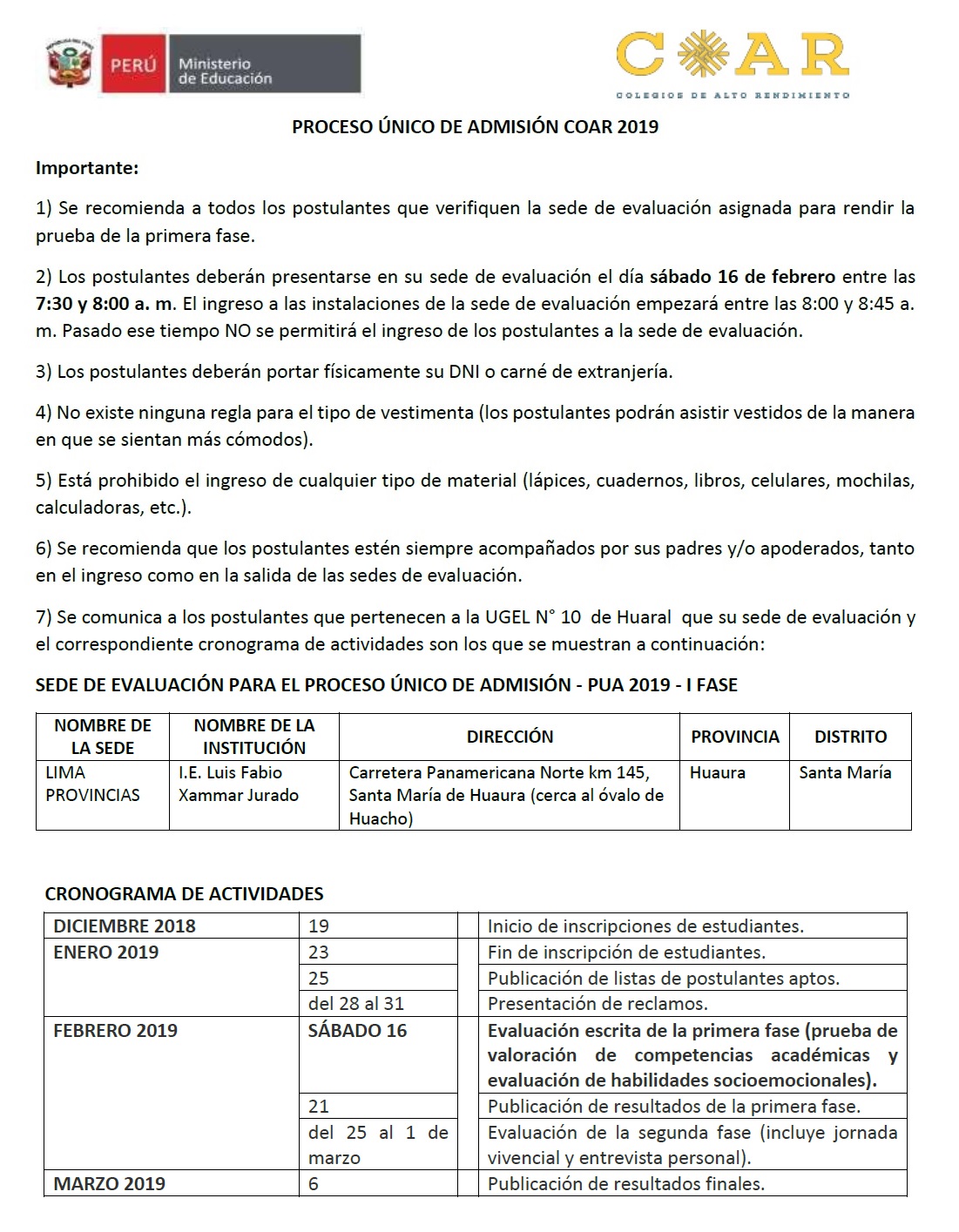 29 Ene,2019 Comunicados COMMENTS Lista de postulantes aptos para rendir la evaluación del COAR y recomendaciones. ver lista de postulantes aptos para rendir la evaluación de primera fase.