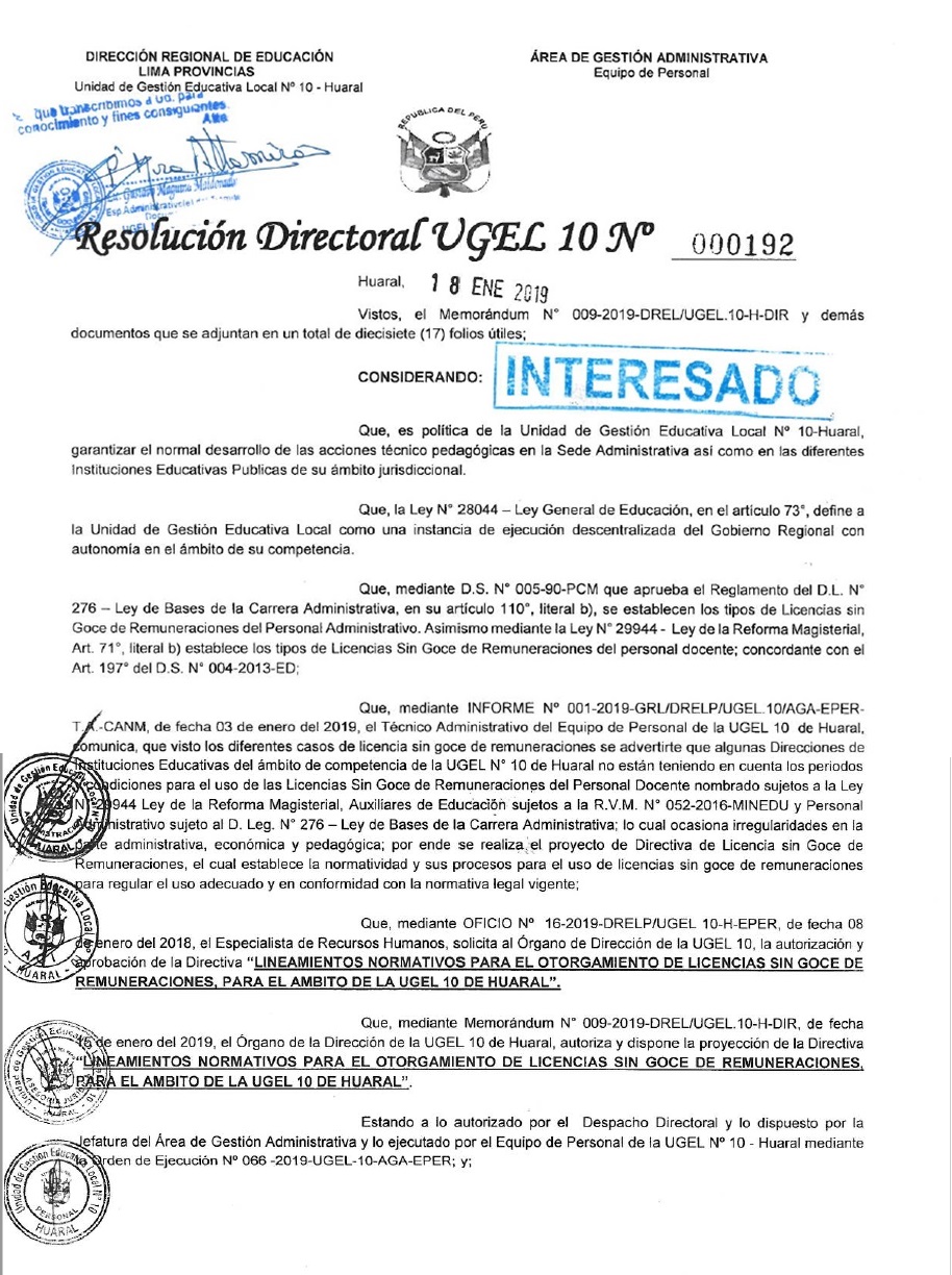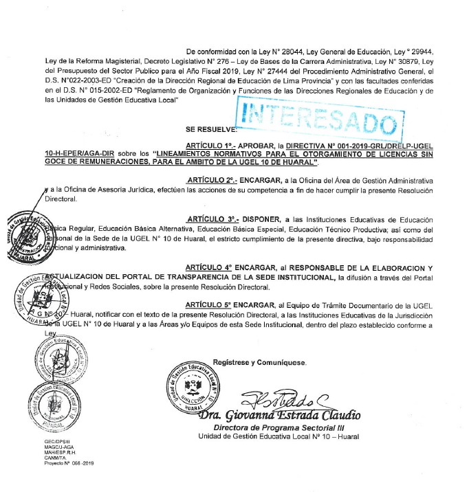 04 Feb,2019 Comunicados COMMENTS Lineamientos Normativos para el Otorgamiento de Licencias Sin Goce de Remuneraciones. ver Directiva 001-2019 -- Lineamientos Normativos para el Otorgamiento de Licencias Sin Goce de Remuneraciones.