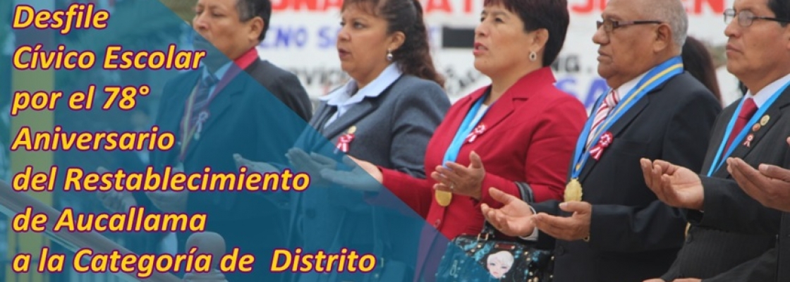 27 Nov,2018 Comunicados COMMENTS Convocatoria a Desfiles Escolar por el 78° Aniversario del Restablecimiento de Aucallama a la Categoría de Distrito. ver y descargar directiva Leer más