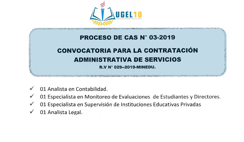 28 Feb,2019 Convocatorias COMMENTS CAS 03 - Convocatoria para la Contratación Administrativa de Servicios. ver convocatoria y anexos