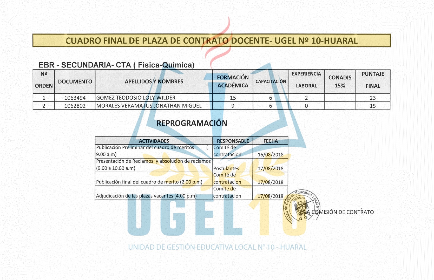 17 Ago,2018 Convocatorias COMMENTS Cuadro Final de Contrato Docente EBR - Secundaria - CTA [Física-Química]